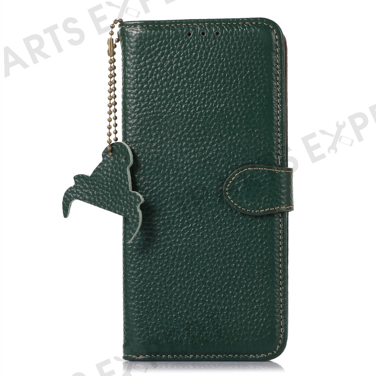 - 【Premium Material】 Made of premium genuine cow leather with delicate litchi texture and TPU offers a good hand feeling, and comes with a small chain decoration