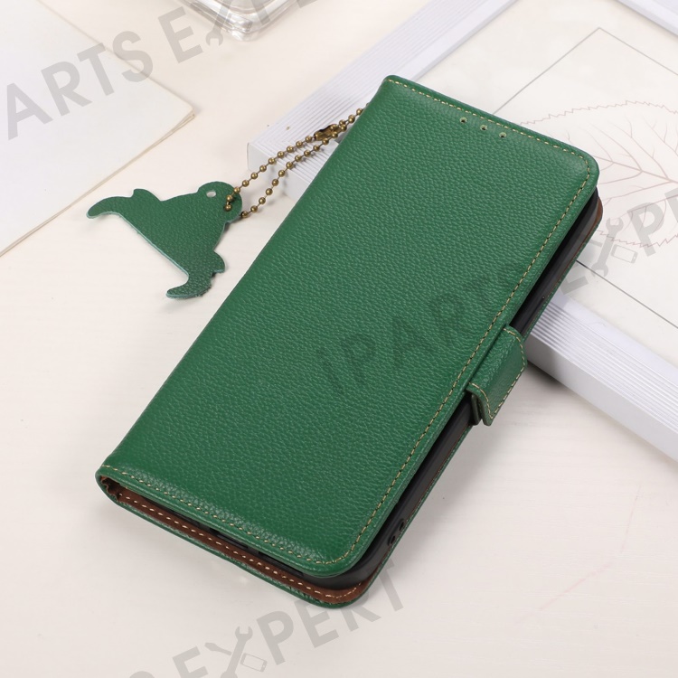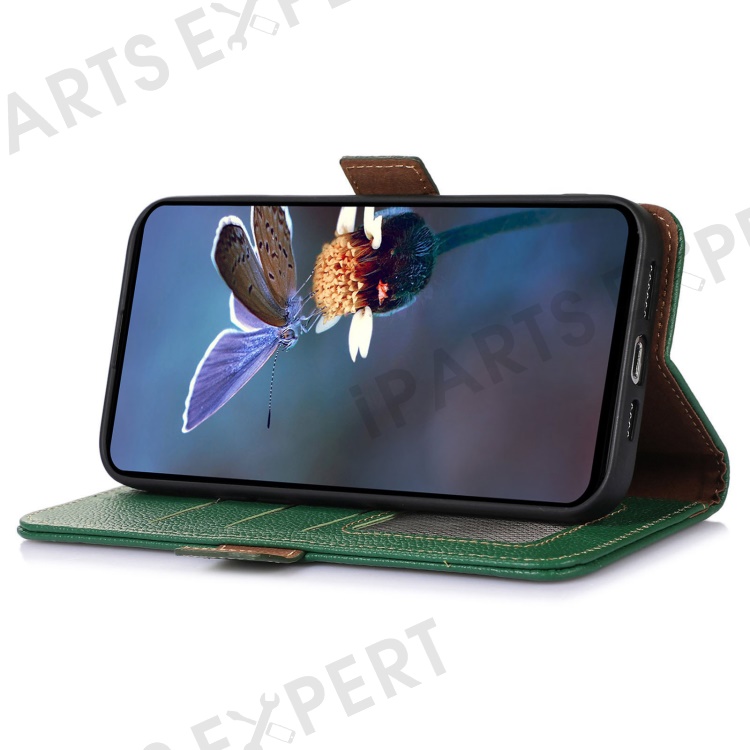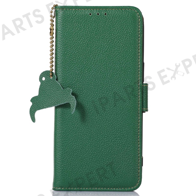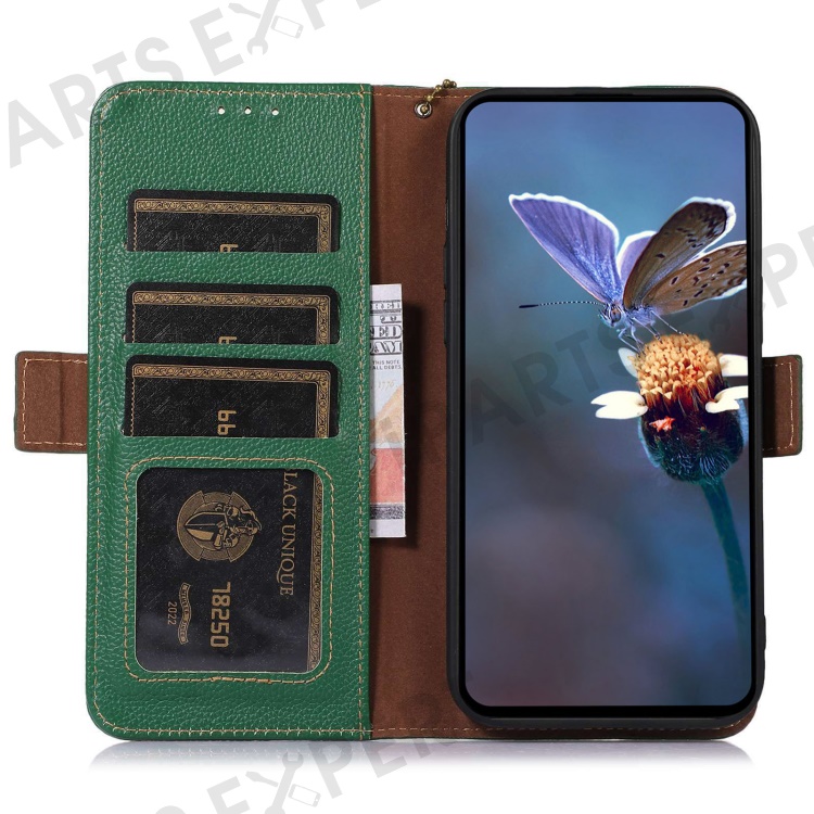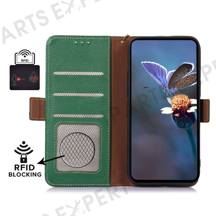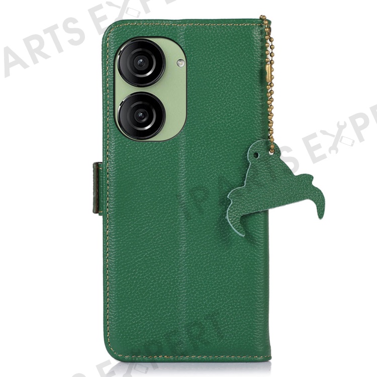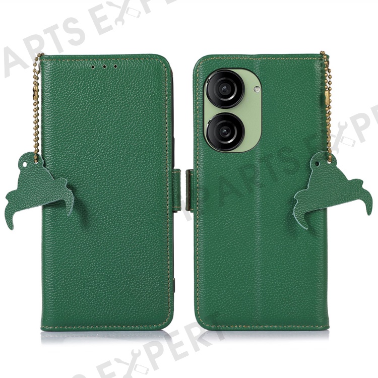 For Asus Zenfone 10 5G RFID Blocking Genuine Cow Leather Phone Case Litchi Texture Stand Wallet Cover - Green
