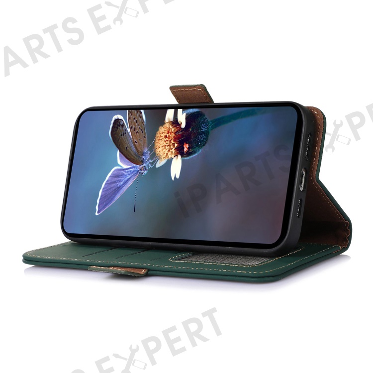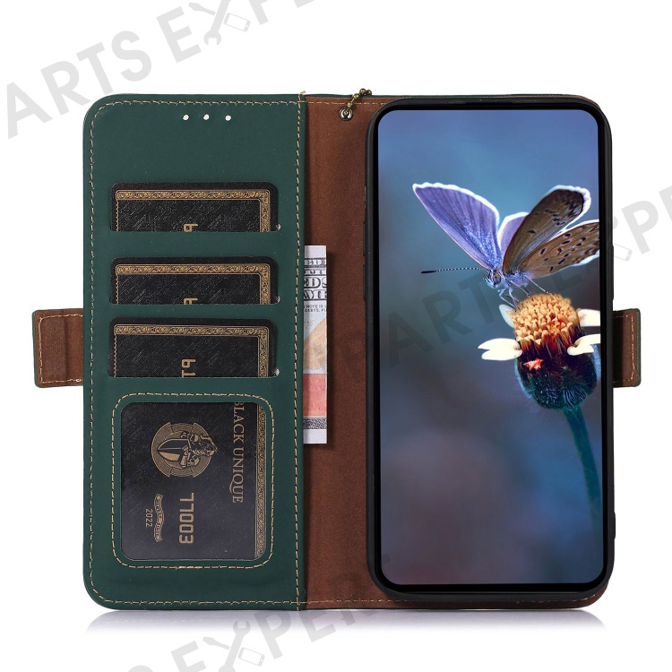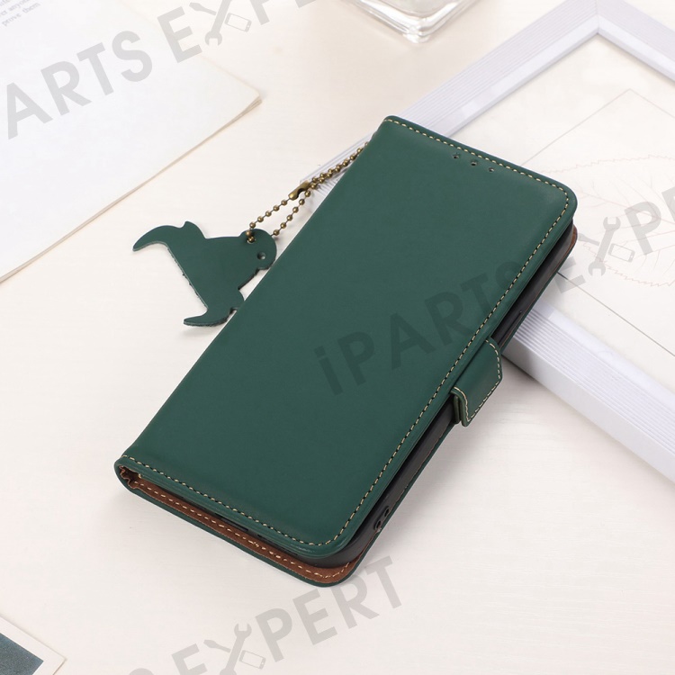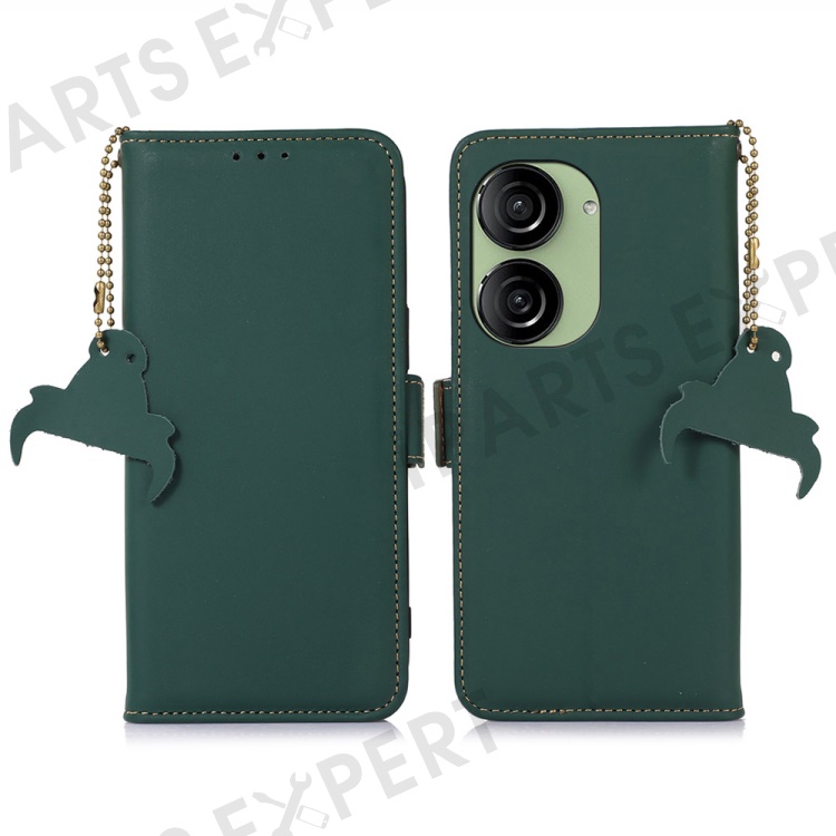 For Asus Zenfone 10 5G Silky Feeling Genuine Cow Leather Phone Cover RFID Blocking Wallet Stand Case - Green