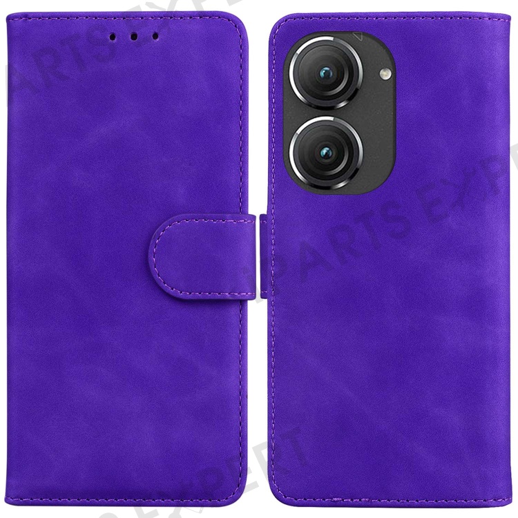 For Asus Zenfone 9 5G Magnetic Shockproof Wallet Phone Case PU Leather Anti-scratch Stand Phone Cover - Purple