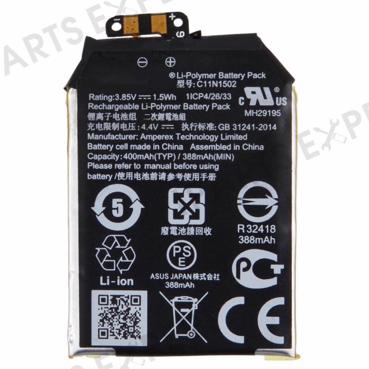 For Asus Zenwatch 2 WI502Q 3.87V 388mAh Rechargeable Li-Polymer Battery Assembly Part (Encode: C11N1502)