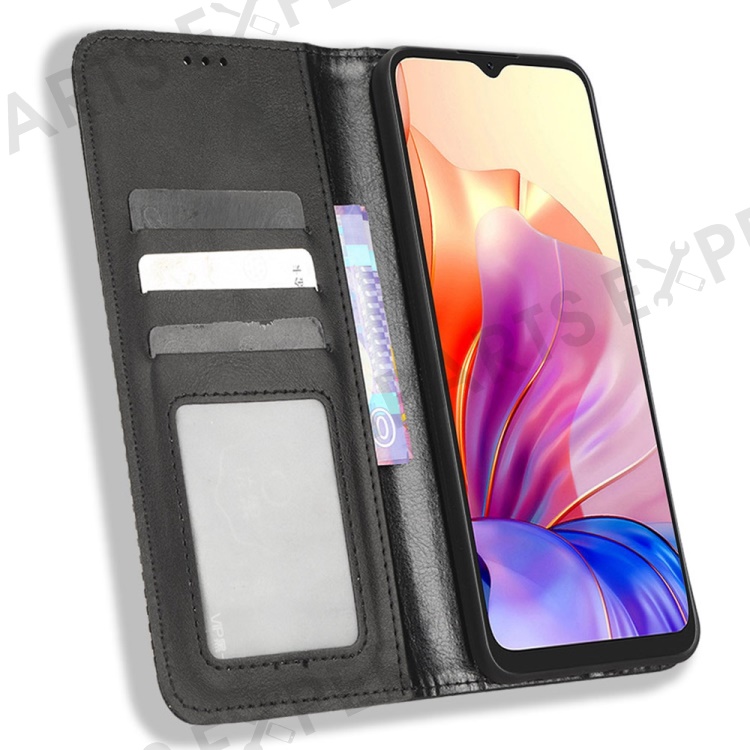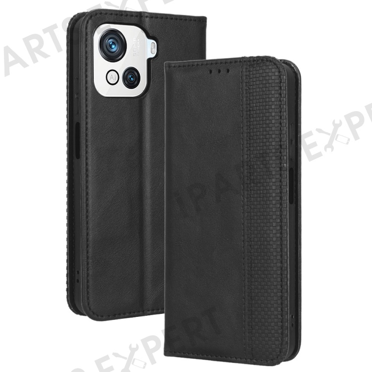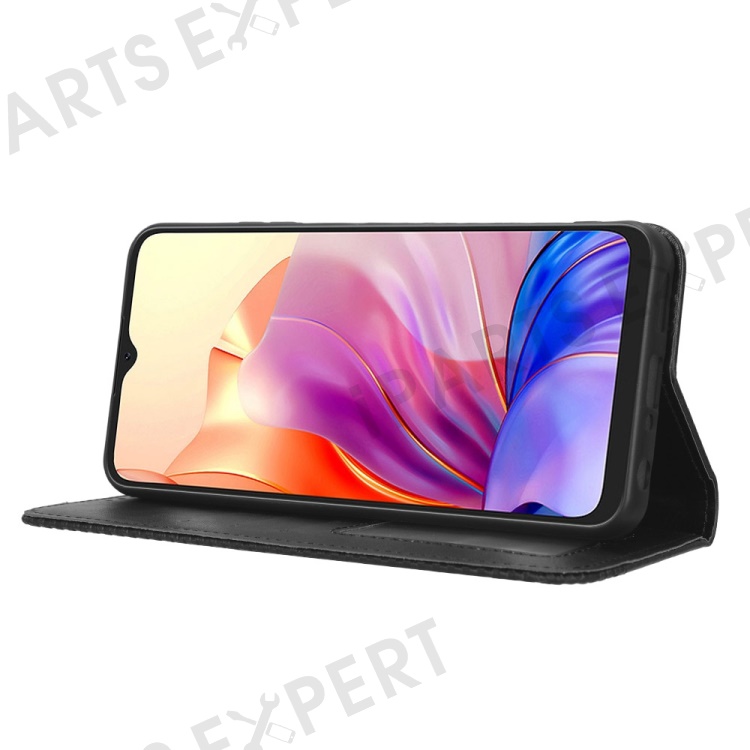 For Blackview Oscal C80 4G Imprinted Pattern Wallet Phone Case Retro Texture PU Leather Stand Magnetic Absorption Flip Cover - Black