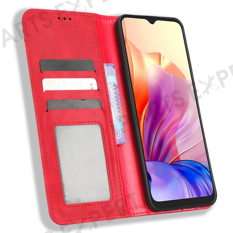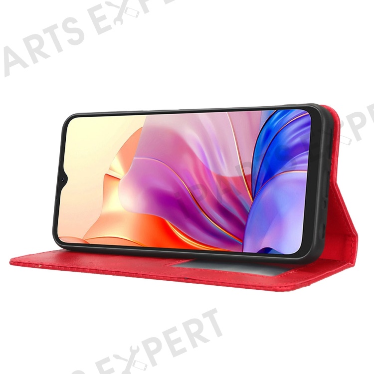 For Blackview Oscal C80 4G Imprinted Pattern Wallet Phone Case Retro Texture PU Leather Stand Magnetic Absorption Flip Cover - Red