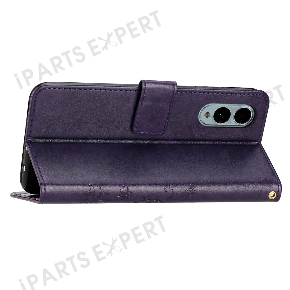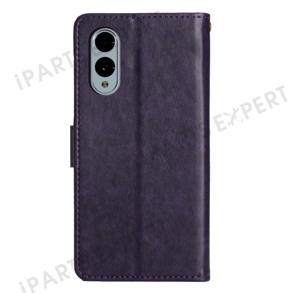 For Fujitsu Arrows We2 F-52E Case PU Leather Phone Wallet Cover with Strap - Dark Purple