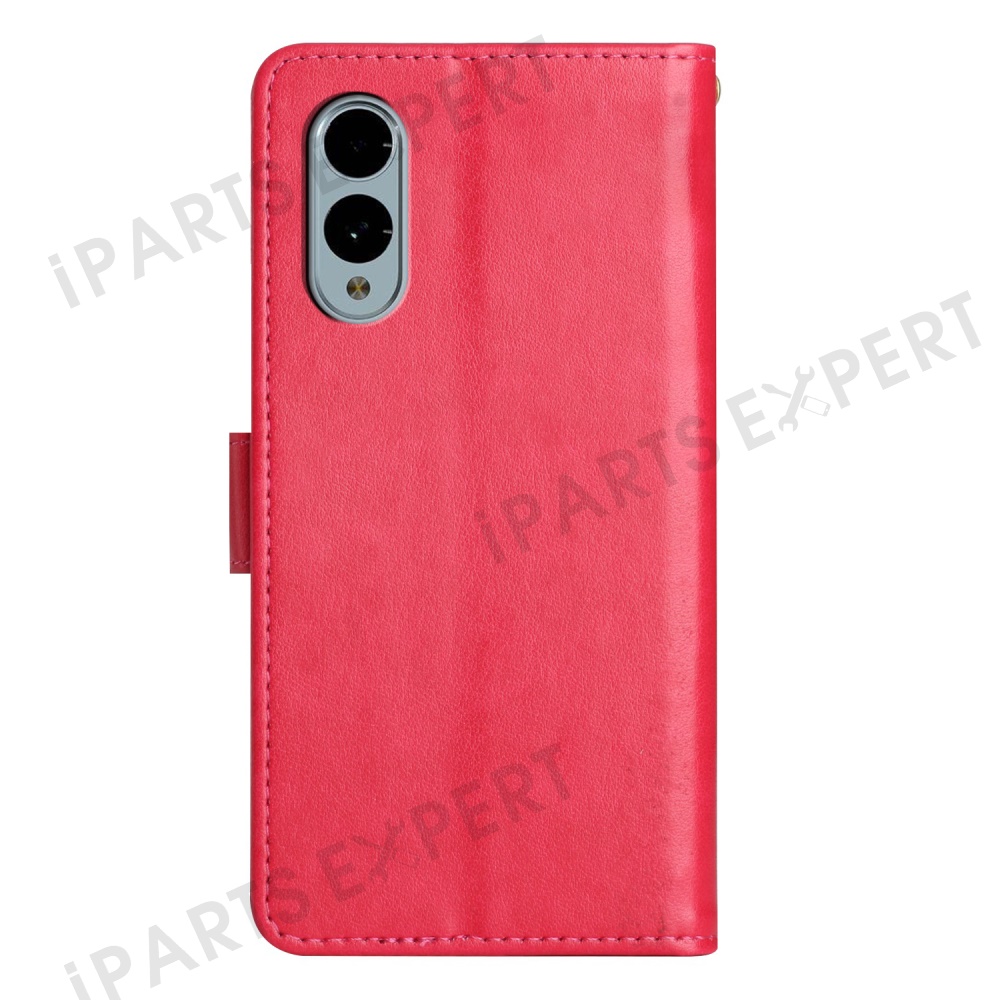 For Fujitsu Arrows We2 F-52E Case PU Leather Phone Wallet Cover with Strap - Red