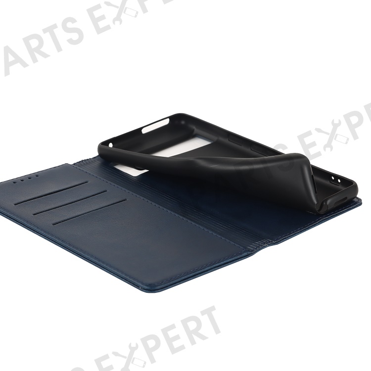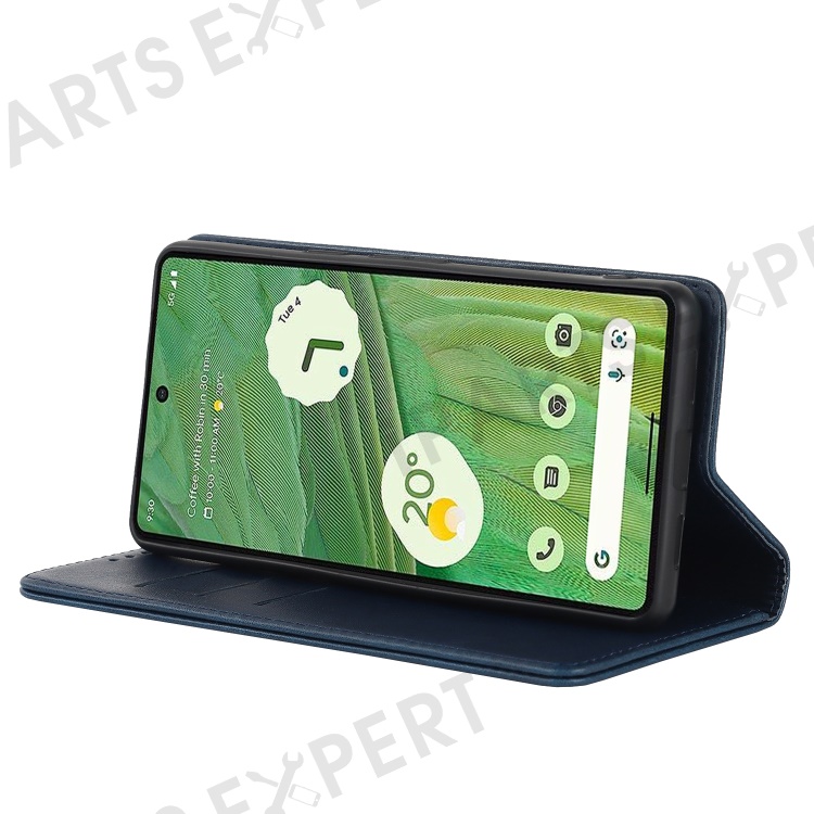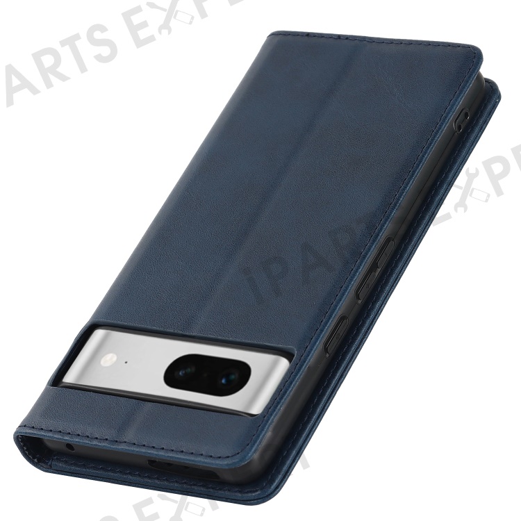 For Google Pixel 7 5G Phone Case Calf Texture Wallet Case Stand Magnetic Absorption All-Inclusive Shockproof Phone Cover - Dark Blue