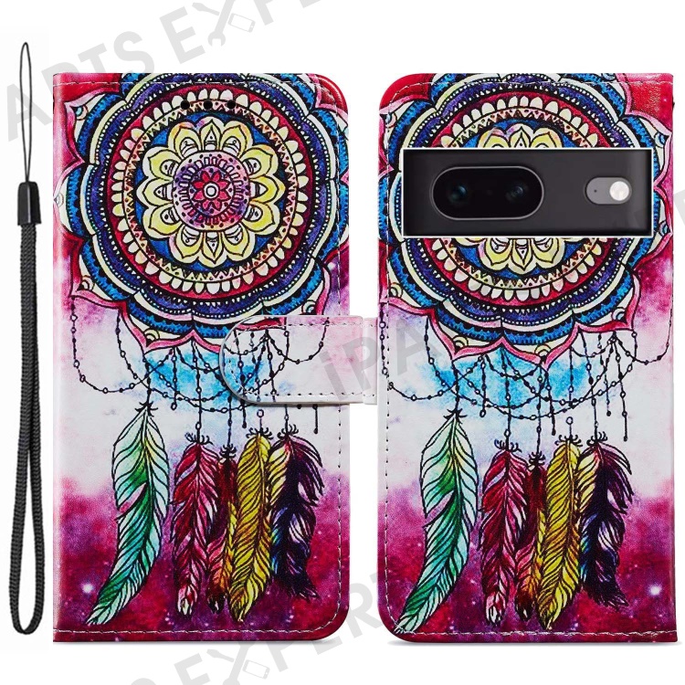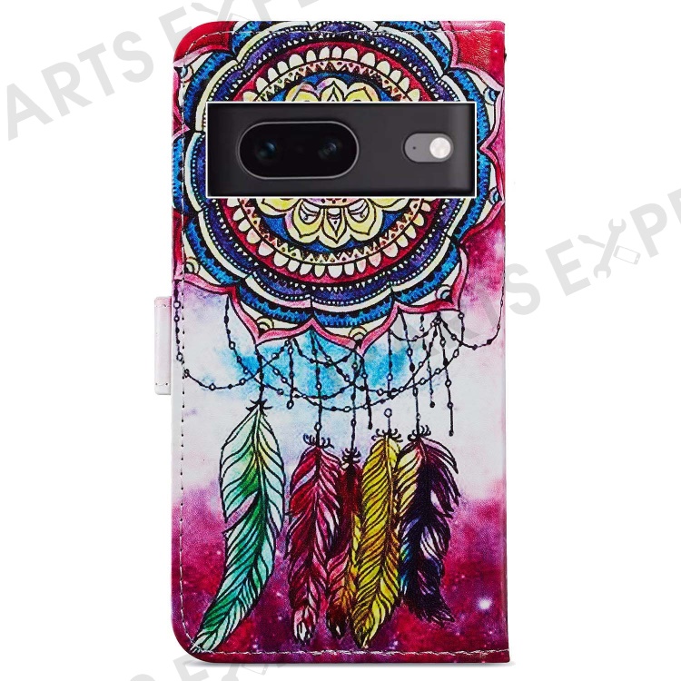 For Google Pixel 7 5G PU Leather Pattern Printing Phone Case Wallet Stand Flip Folio Cover - Dream Catcher
