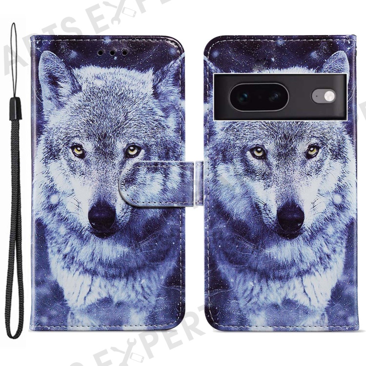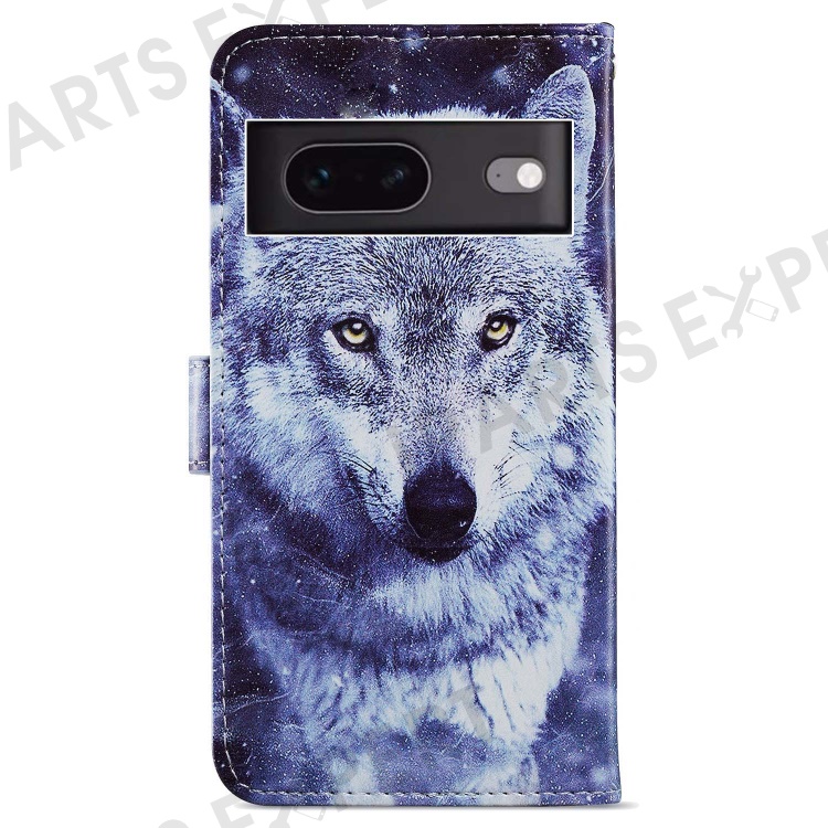 For Google Pixel 7 5G PU Leather Pattern Printing Phone Case Wallet Stand Flip Folio Cover - Wolf