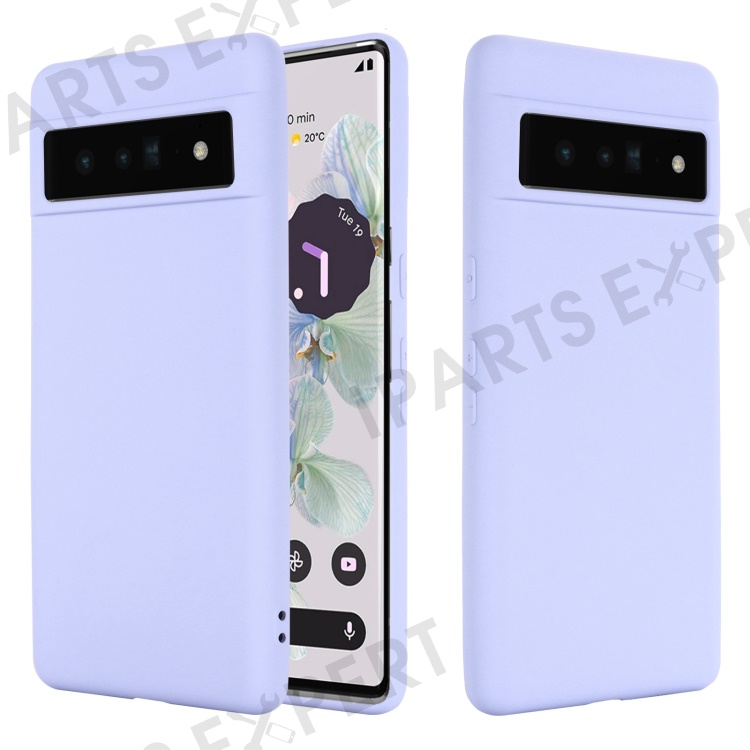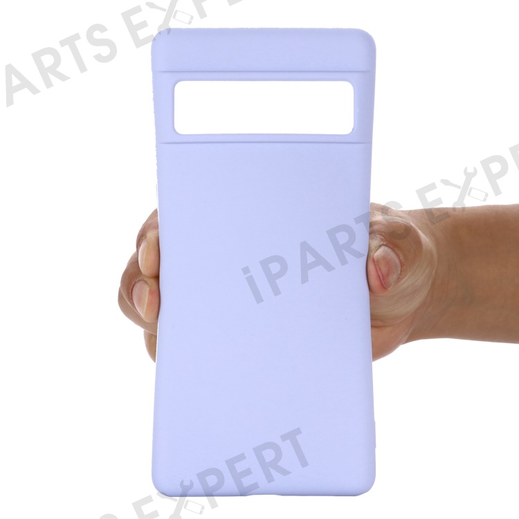 For Google Pixel 7 5G Liquid Silicone Case Soft Microfiber Lining Scratch-Resistant Precise Cut-Outs Shell with Strap - Purple