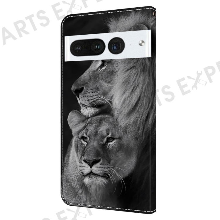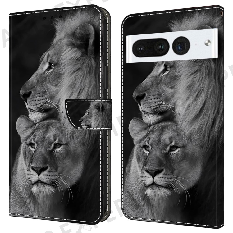 For Google Pixel 7 Pro 5G Case Anti-Scratch Leather Wallet Phone Cover - Couple Lions