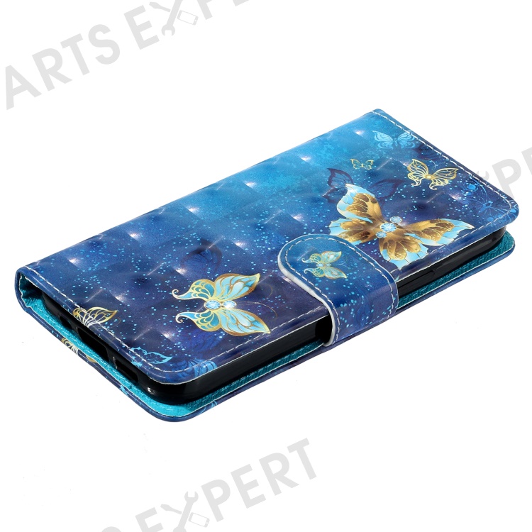 For Google Pixel 7 Pro 5G Flip Stand Phone Case 3D Pattern Printing PU Leather Wallet Phone Folio Cover with Strap - Blue Gold Butterflies