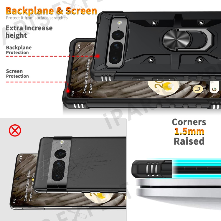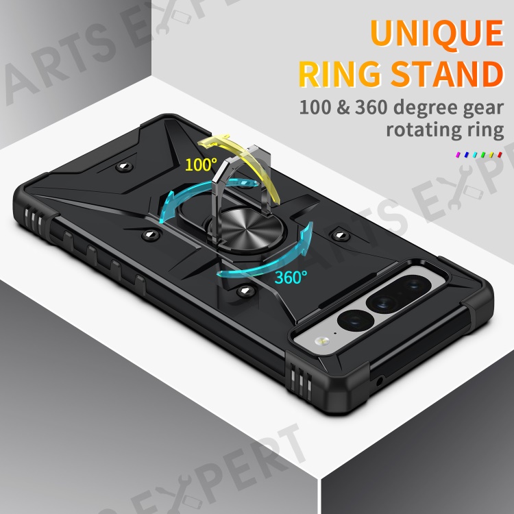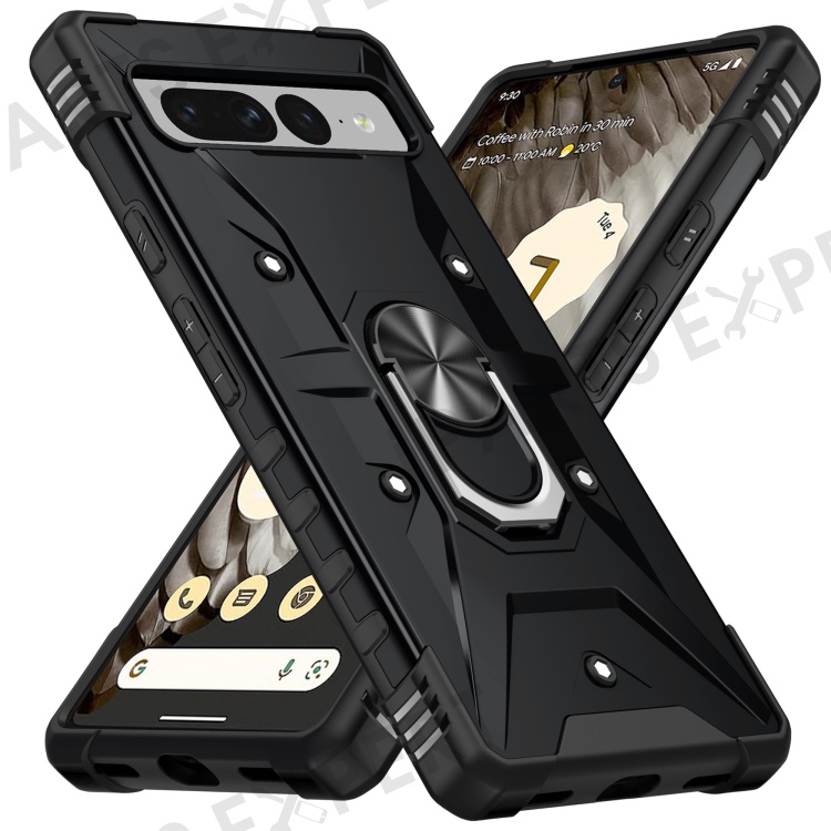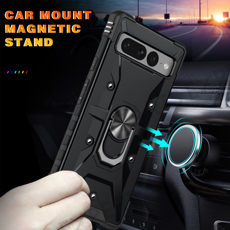 For Google Pixel 7 Pro 5G PC+TPU Armor Phone Case Car Mount Kickstand Shockproof Cover - Black