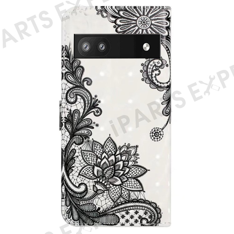 For Google Pixel 7a Case PU Leather 3D Pattern Phone Cover with Stand - Lace Flower