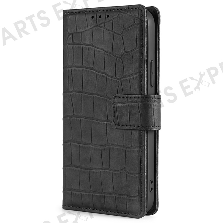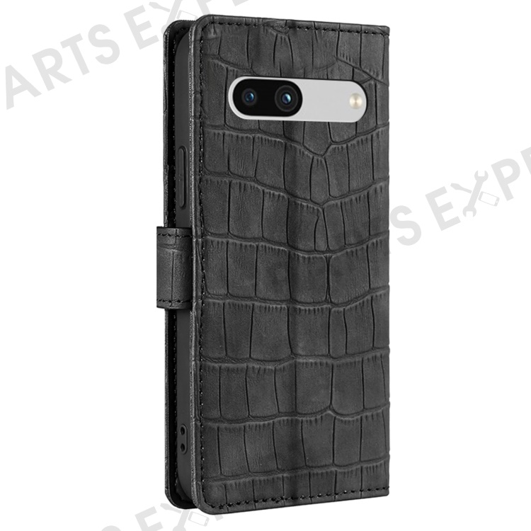 For Google Pixel 7a Crocodile Texture Skin-touch Feeling Phone Case Drop-proof PU Leather Cell Phone Cover with Wallet Stand - Black