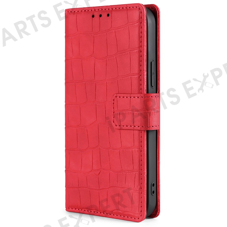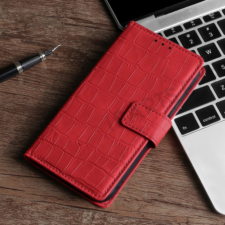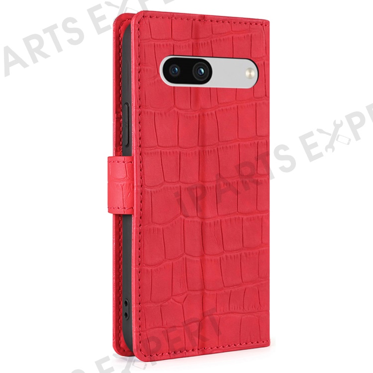 For Google Pixel 7a Crocodile Texture Skin-touch Feeling Phone Case Drop-proof PU Leather Cell Phone Cover with Wallet Stand - Red