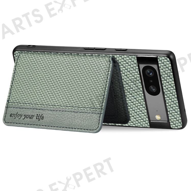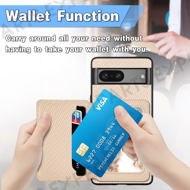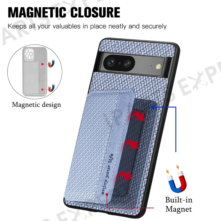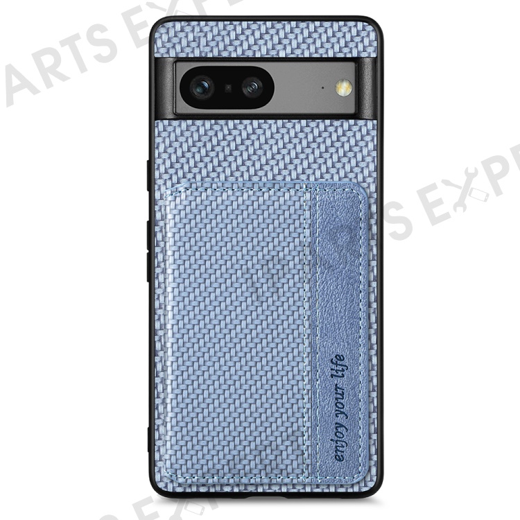 For Google Pixel 7a PU Leather Coated PC+TPU Magnetic Phone Cover Carbon Fiber Texture Shockproof Anti-sratch Phone Case Wallet Kickstand - Blue