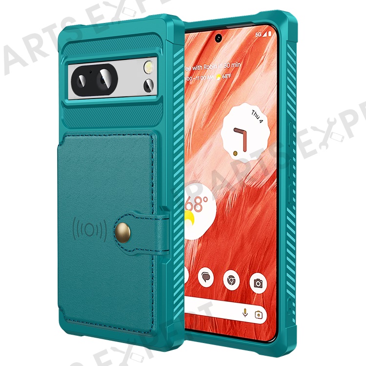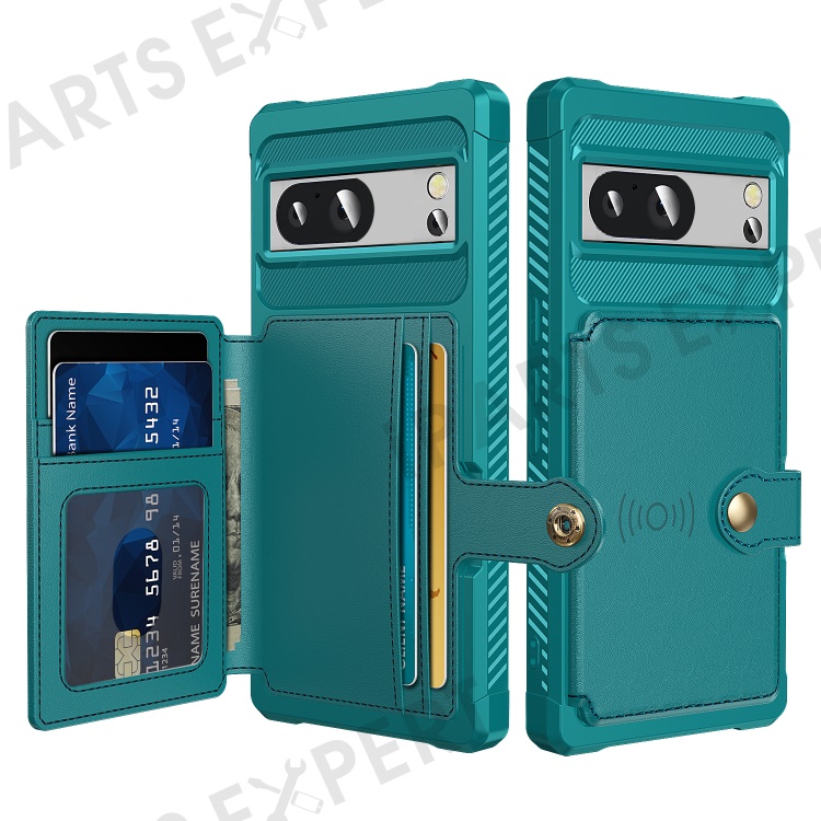For Google Pixel 8 Pro PU Leather+TPU Anti-drop Cover Card Bag Phone Case Support Magnetic Car Mount - Green