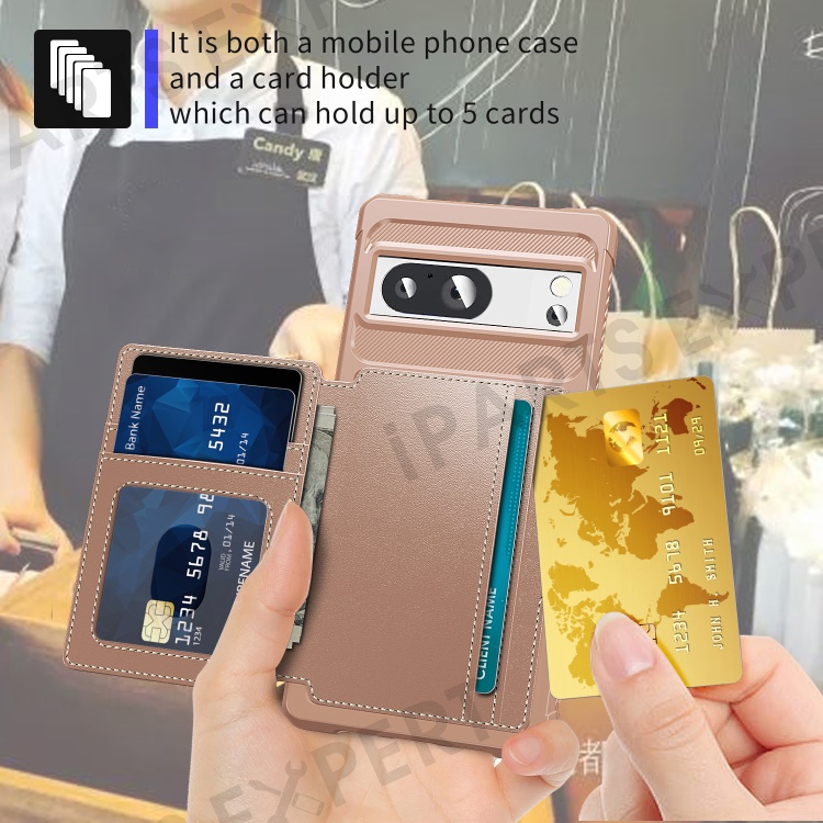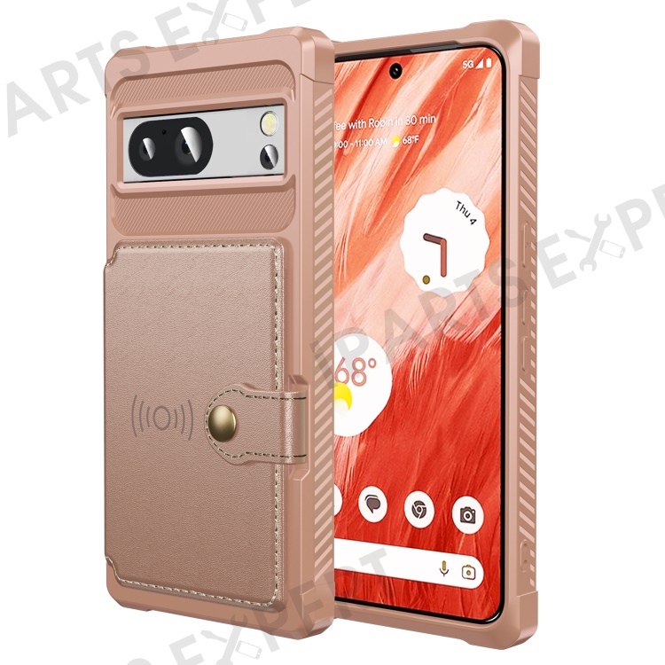For Google Pixel 8 Pro PU Leather+TPU Anti-drop Cover Card Bag Phone Case Support Magnetic Car Mount - Pink
