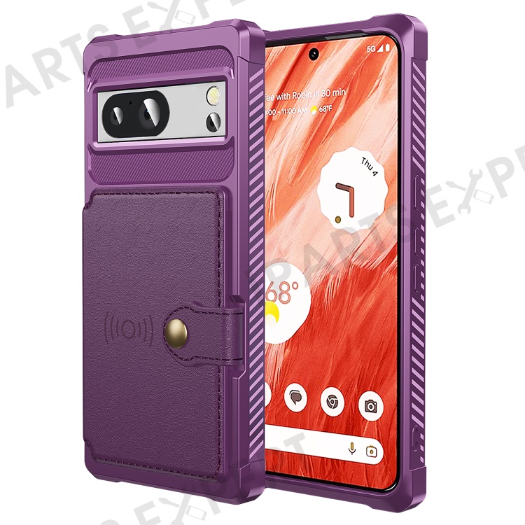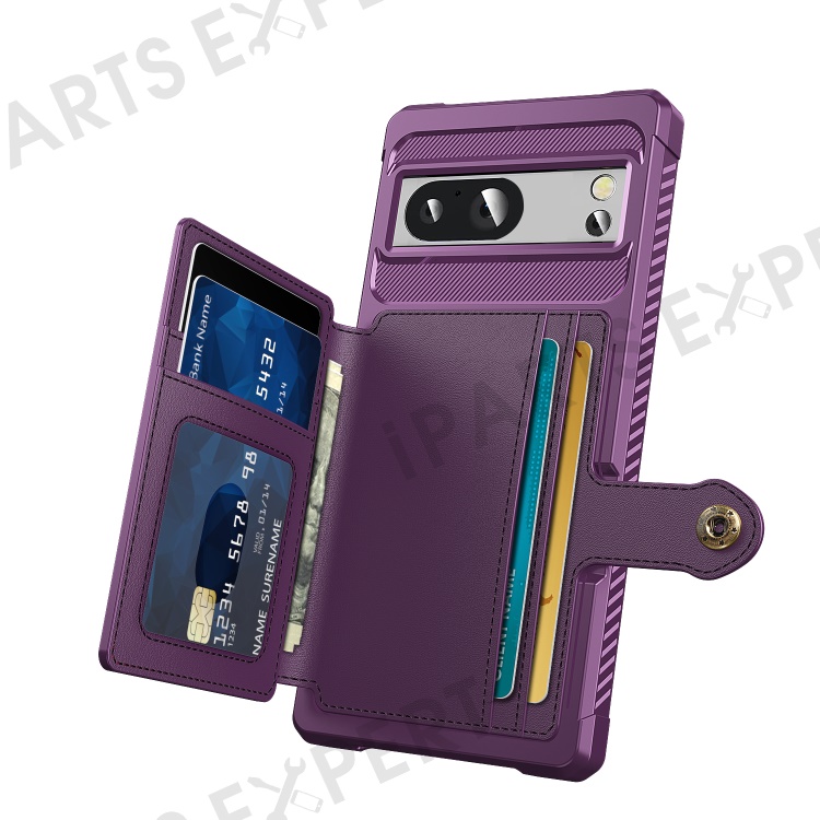 For Google Pixel 8 Pro PU Leather+TPU Anti-drop Cover Card Bag Phone Case Support Magnetic Car Mount - Purple