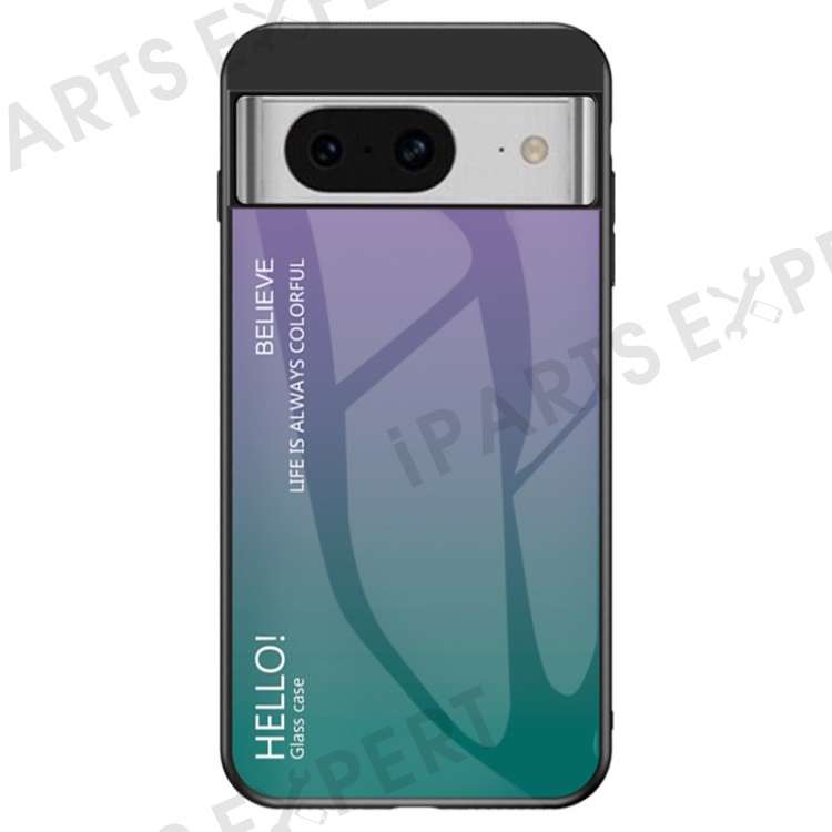 For Google Pixel 8 Tempered Glass Phone Case Gradient Shockproof PC+TPU Protective Cover - Gradient Purple