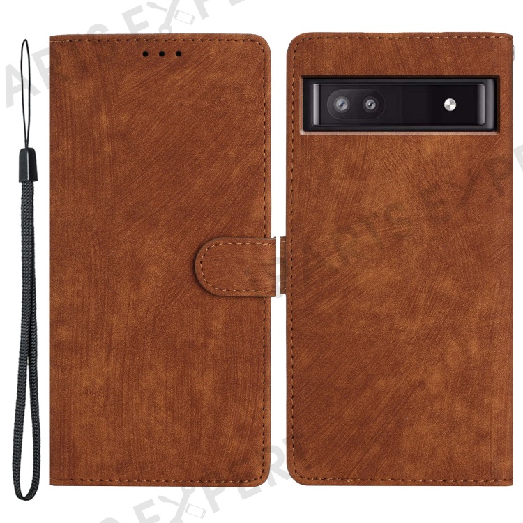 For Google Pixel 8a Case Skin-Touch PU Leather Card Holder Phone Cover - Brown