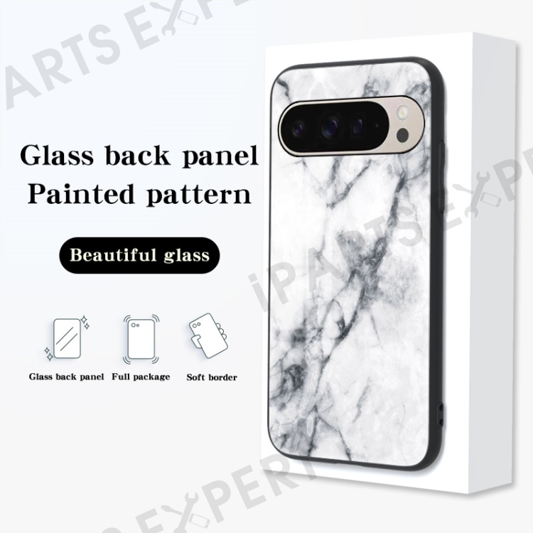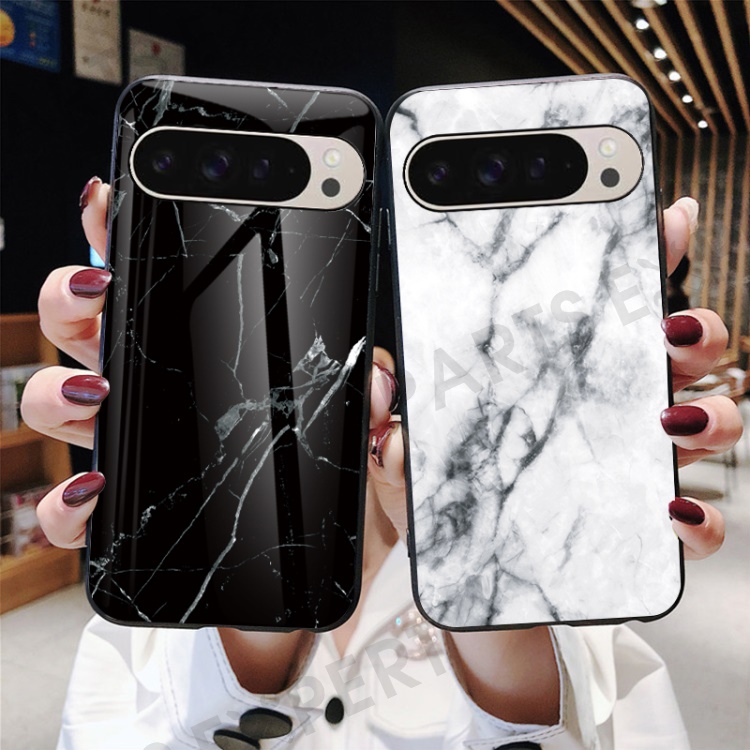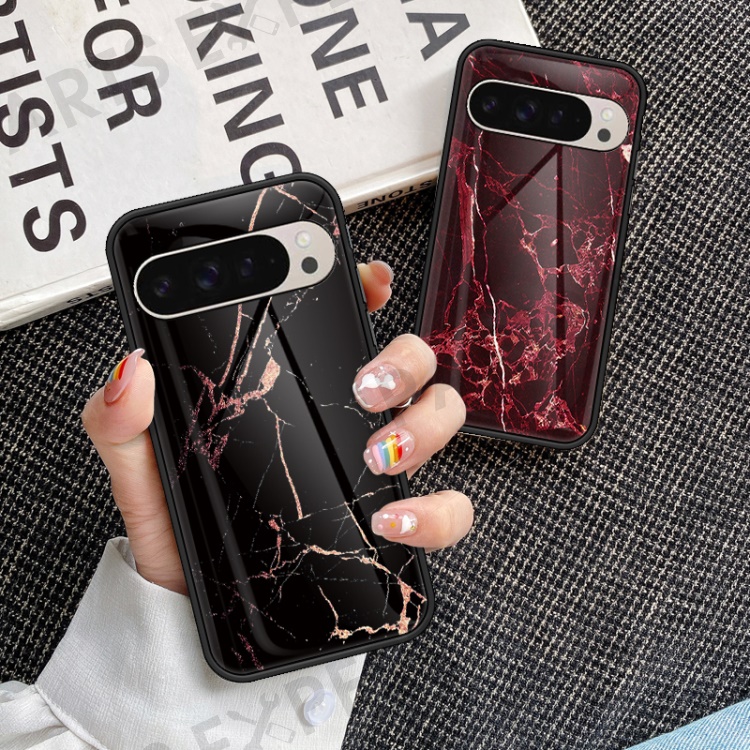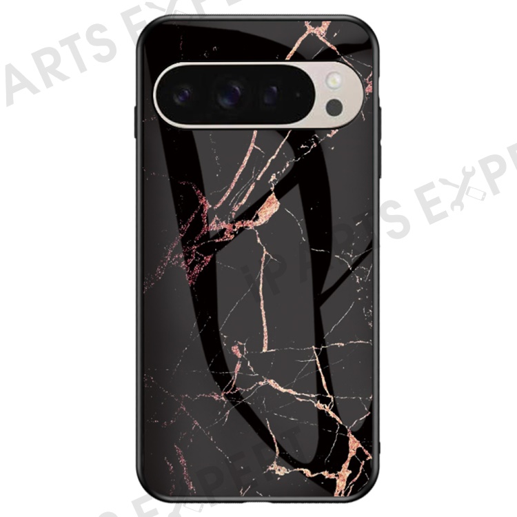 For Google Pixel 9 Pro / 9 Case Marble Pattern Tempered Glass + PC + TPU Protective Phone Cover - Gold Black Marble