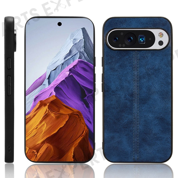 For Google Pixel 9 Pro XL Case Leather+TPU+PC Phone Cover Stitching Line - Blue