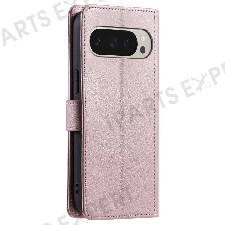 For Google Pixel 9 Pro / Pixel 9 Wallet Case Rhombus Grid PU Leather Phone Cover - Rose Gold
