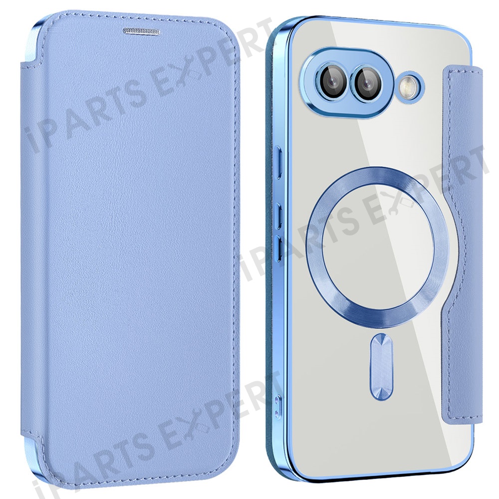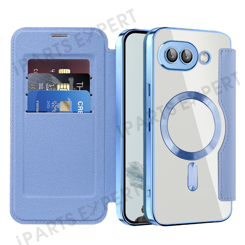 For Google Pixel 9a Magnetic Case RFID Blocking Leather Phone Cover - Blue