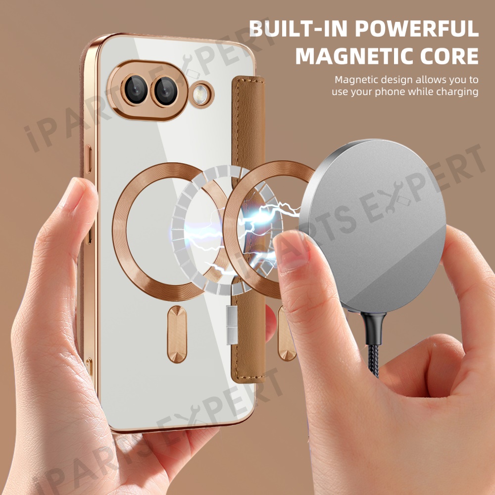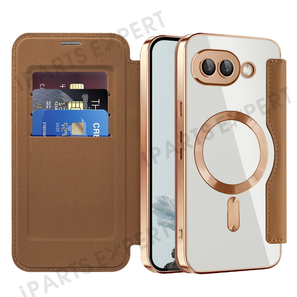 For Google Pixel 9a Magnetic Case RFID Blocking Leather Phone Cover - Brown