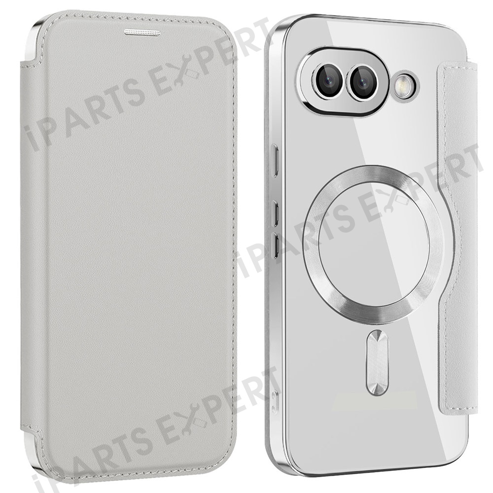 For Google Pixel 9a Magnetic Case RFID Blocking Leather Phone Cover - Silver