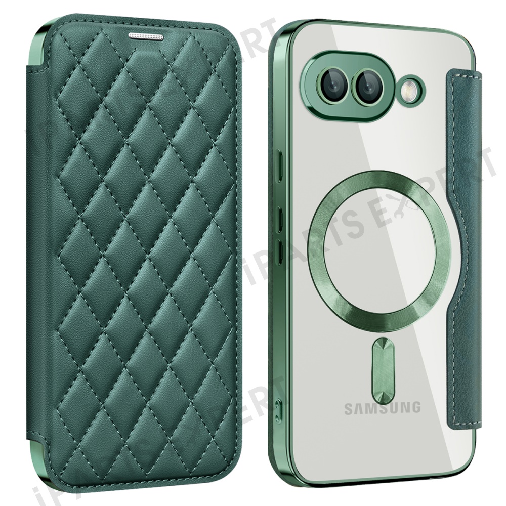 For Google Pixel 9a Magnetic Case Rhombus PU Leather Phone Cover - Blackish Green