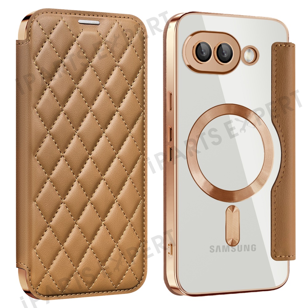 For Google Pixel 9a Magnetic Case Rhombus PU Leather Phone Cover - Brown
