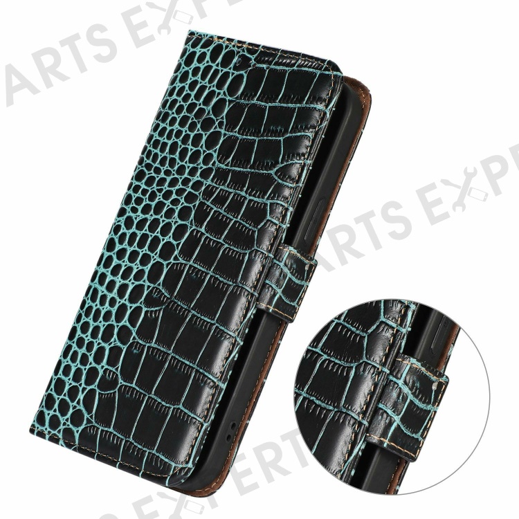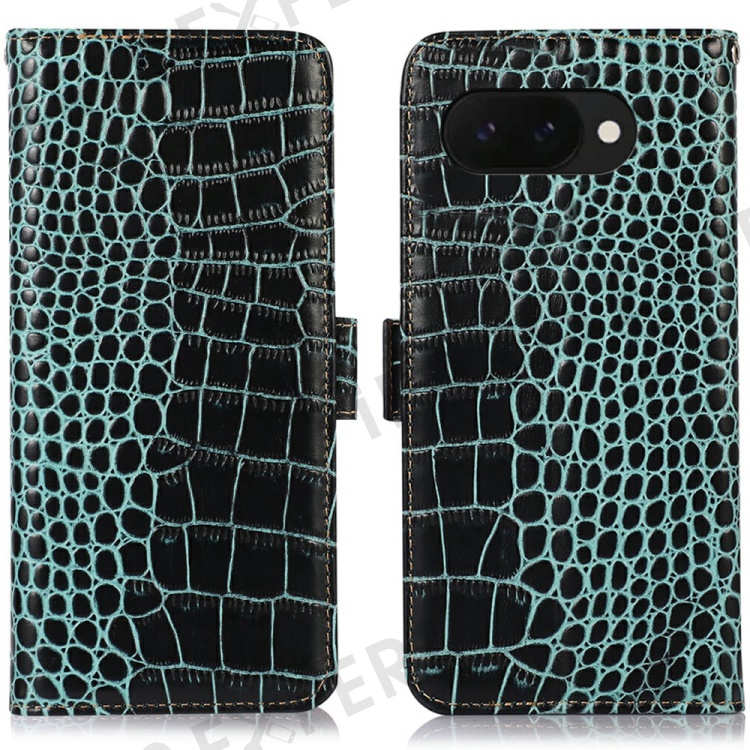 For Google Pixel 9a Case Crocodile Texture Genuine Cow Leather Phone Wallet Cover - Green