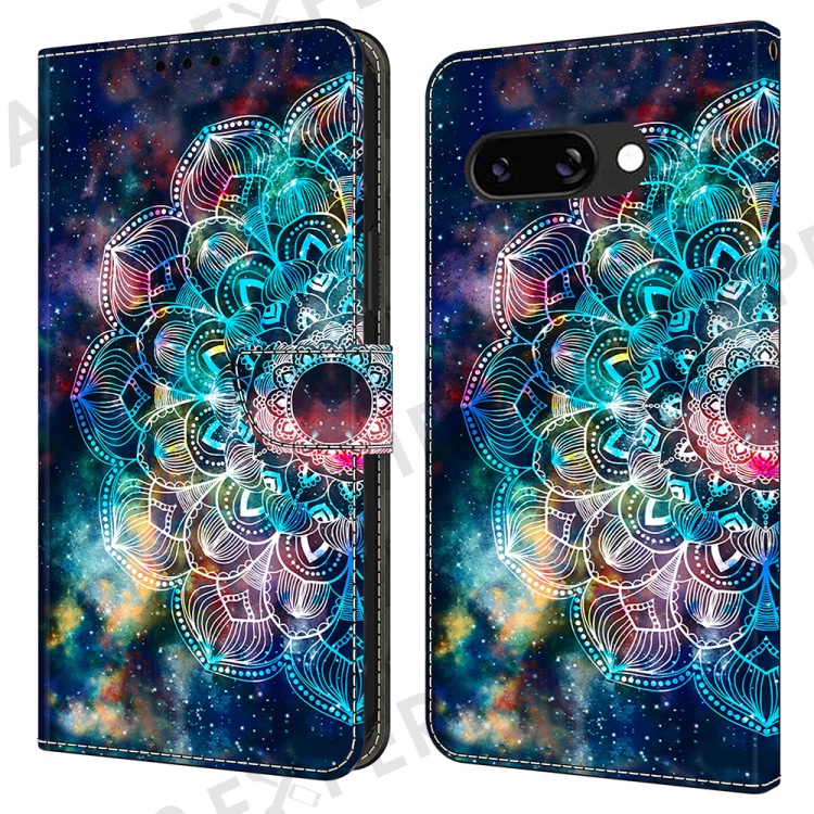 For Google Pixel 9a Case Pattern Printed Protective Cover TPU+PU Leather Flip Phone Case - Gyro Flower
