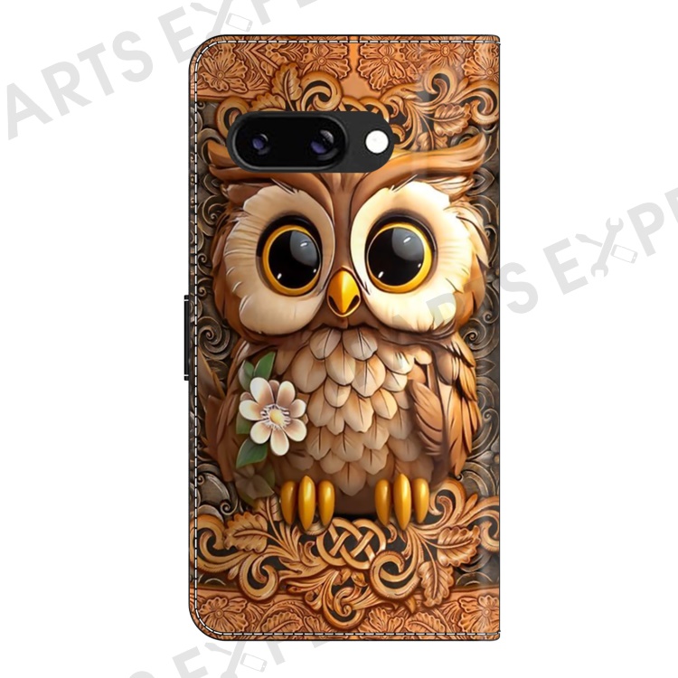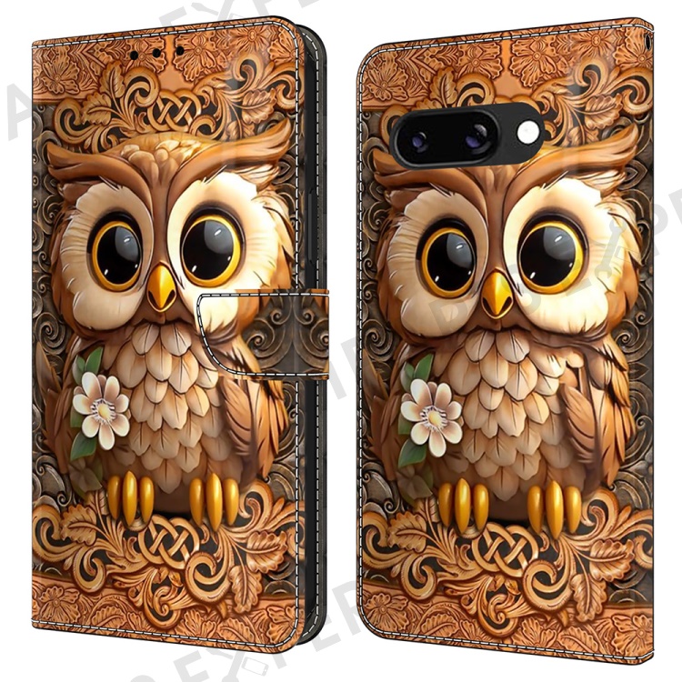 For Google Pixel 9a Case Pattern Printed Protective Cover TPU+PU Leather Flip Phone Case - Red Owl