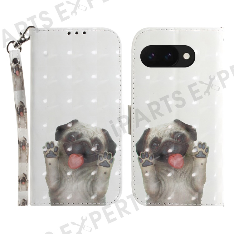 For Google Pixel 9a Case Pattern Printing Leather Wallet Phone Cover with Wrist Strap - Pug