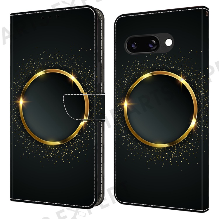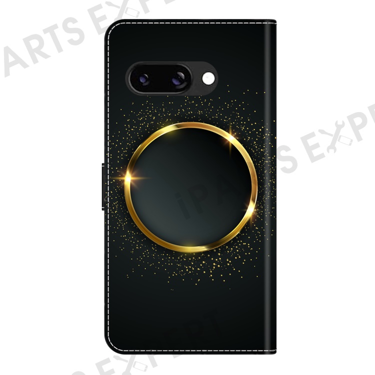 For Google Pixel 9a Case PU Leather Wallet Phone Cover with Stand - Gold Ring