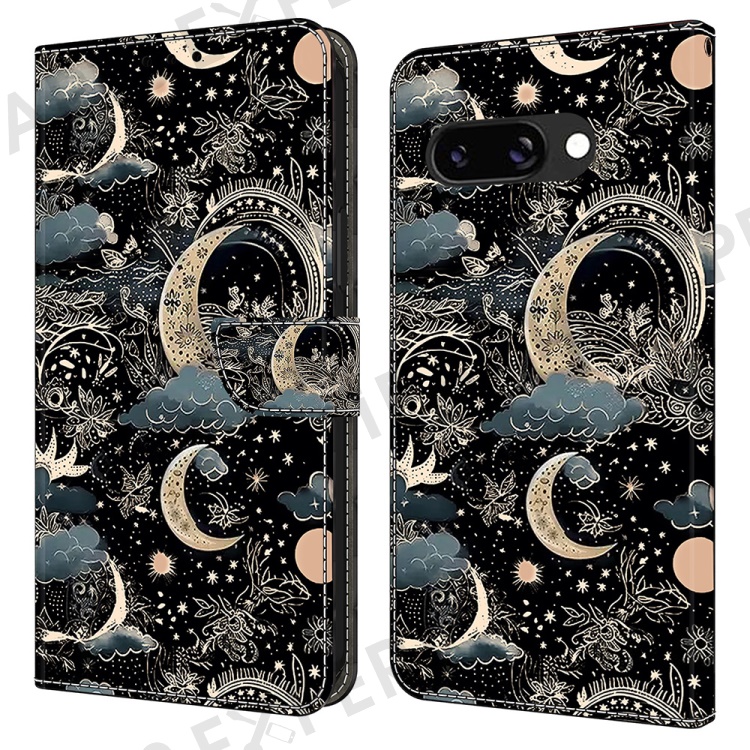For Google Pixel 9a Case PU Leather Wallet Phone Cover with Stand - Moon