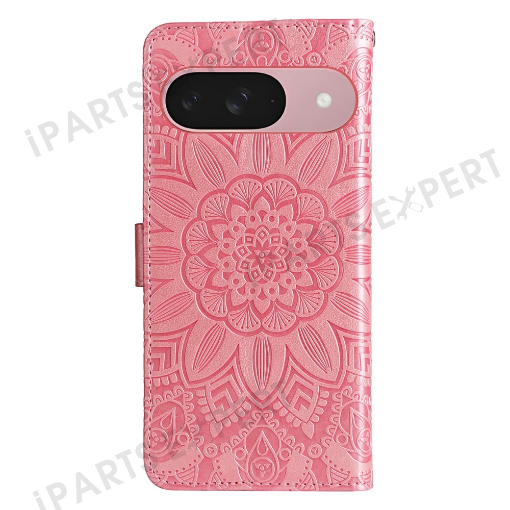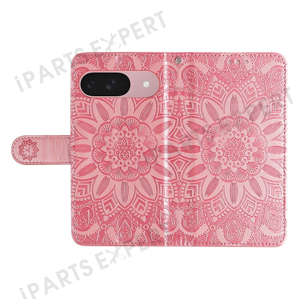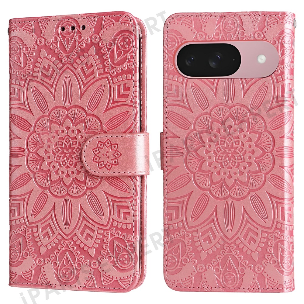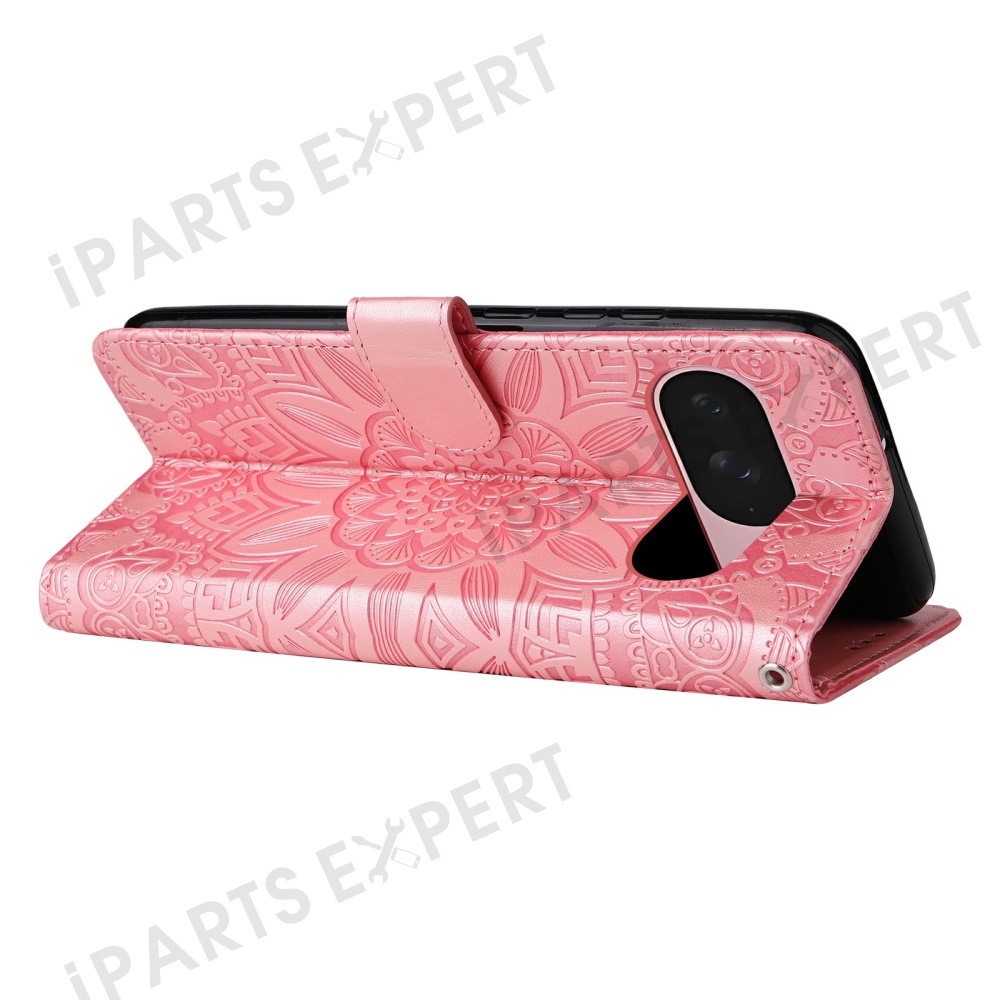 For Google Pixel 9a Case Sunflower Imprint Leather Wallet Phone Cover - Pink