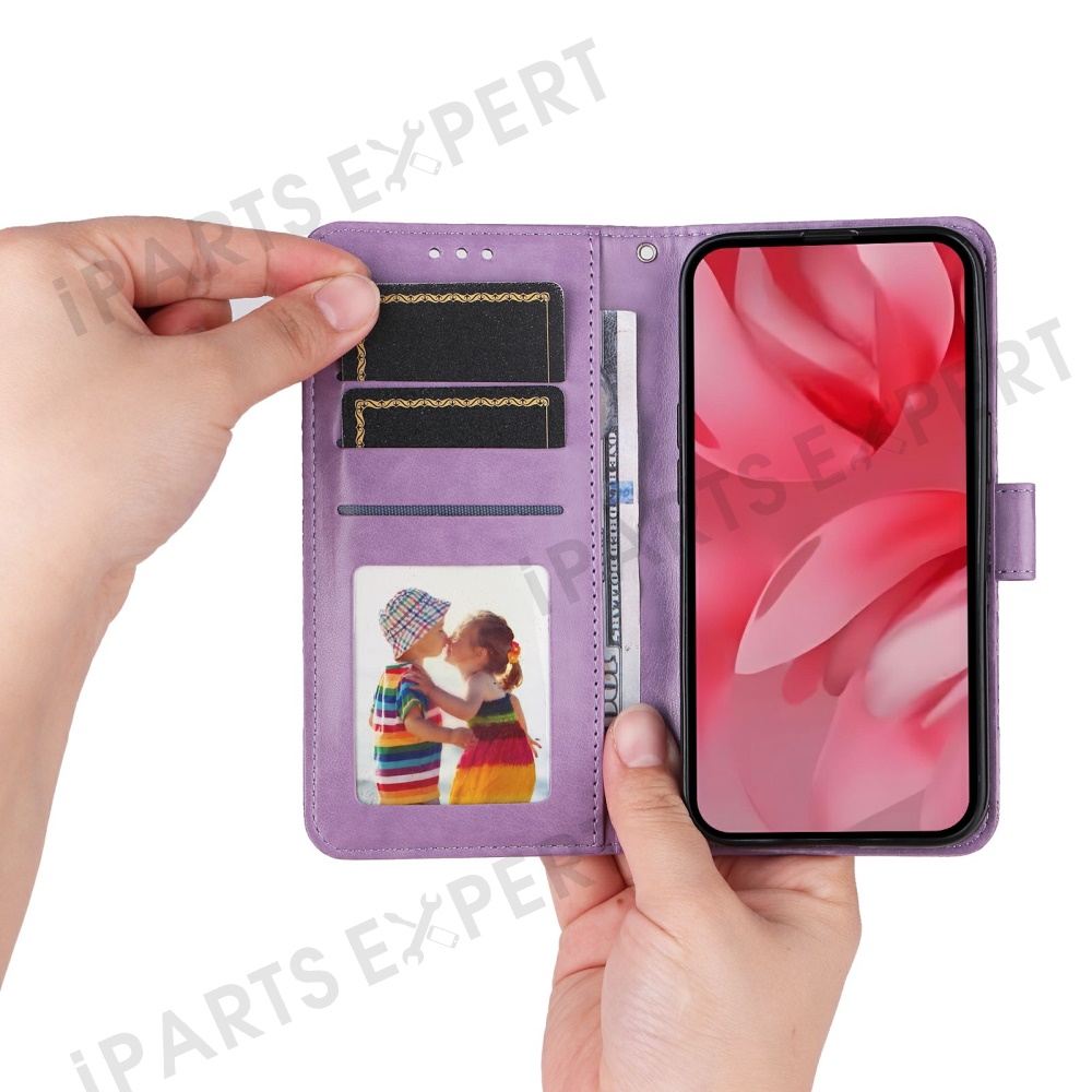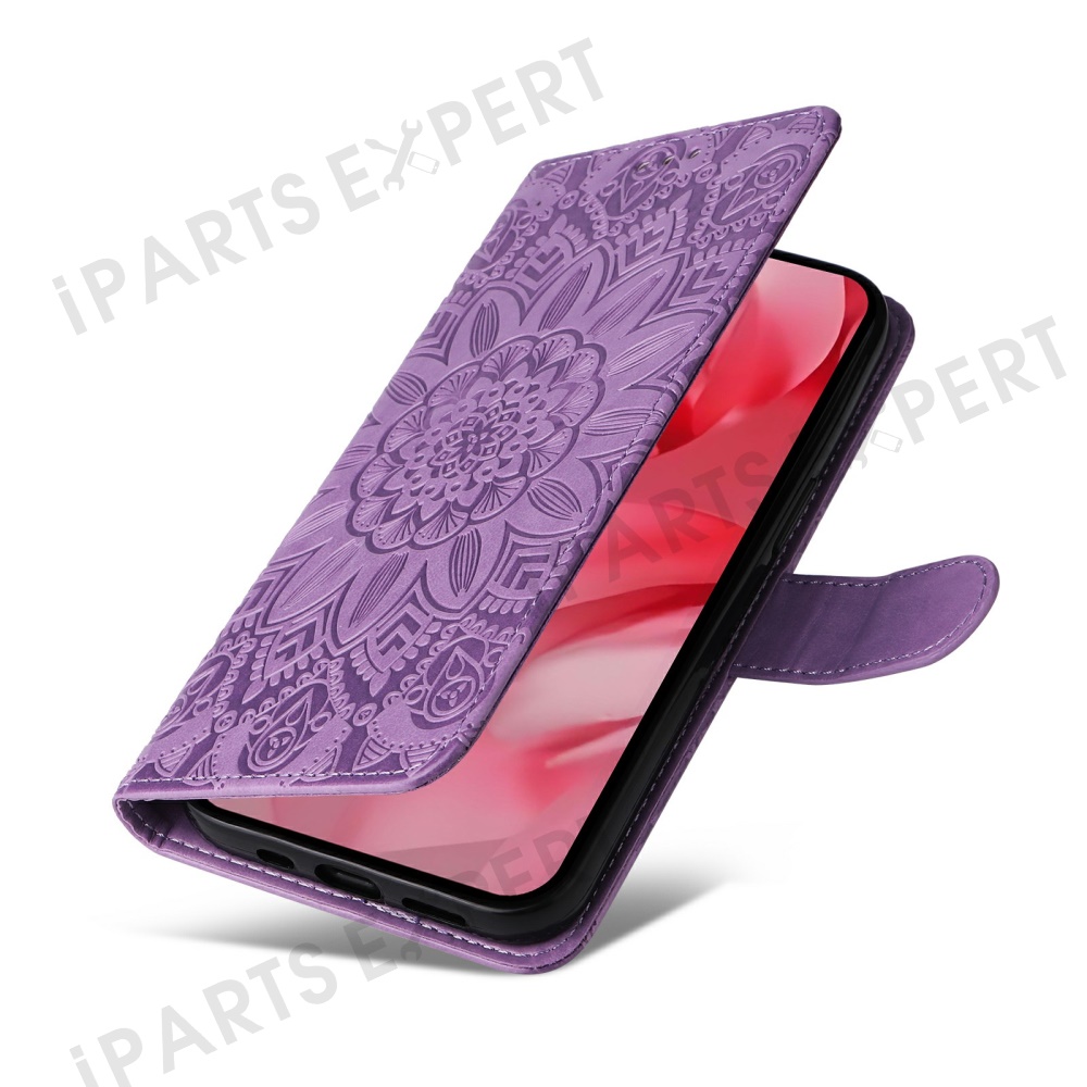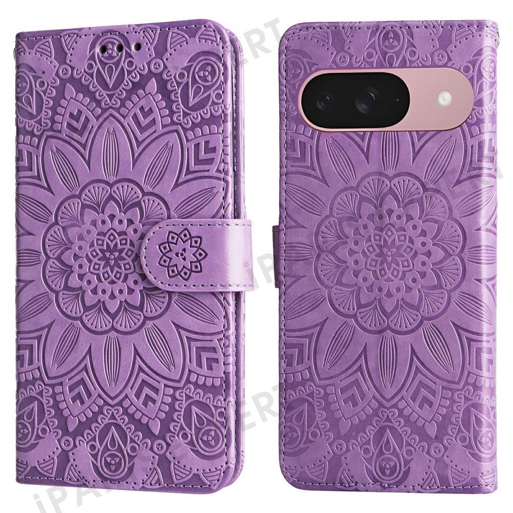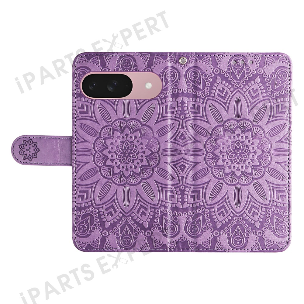 For Google Pixel 9a Case Sunflower Imprint Leather Wallet Phone Cover - Purple