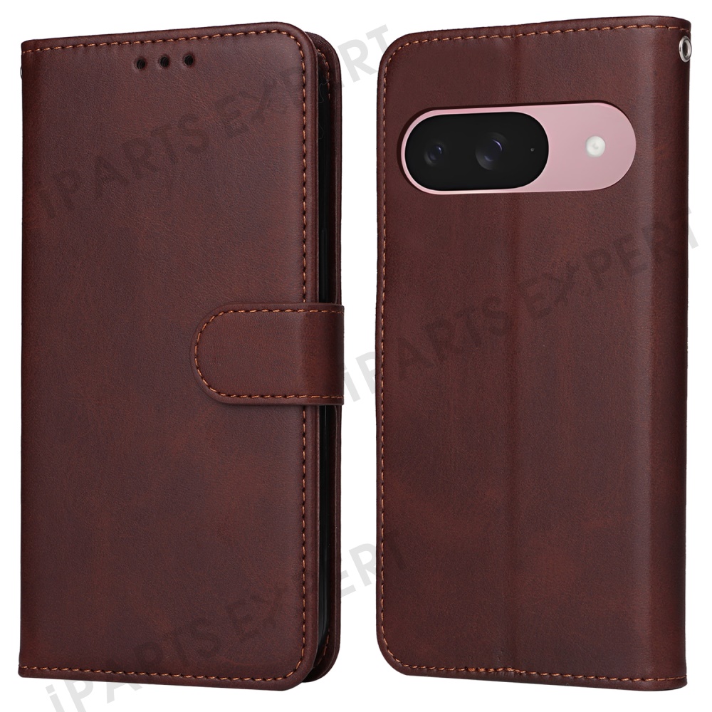 For Google Pixel 9a Case Wallet PU Leather Folio Flip Phone Cover - Brown