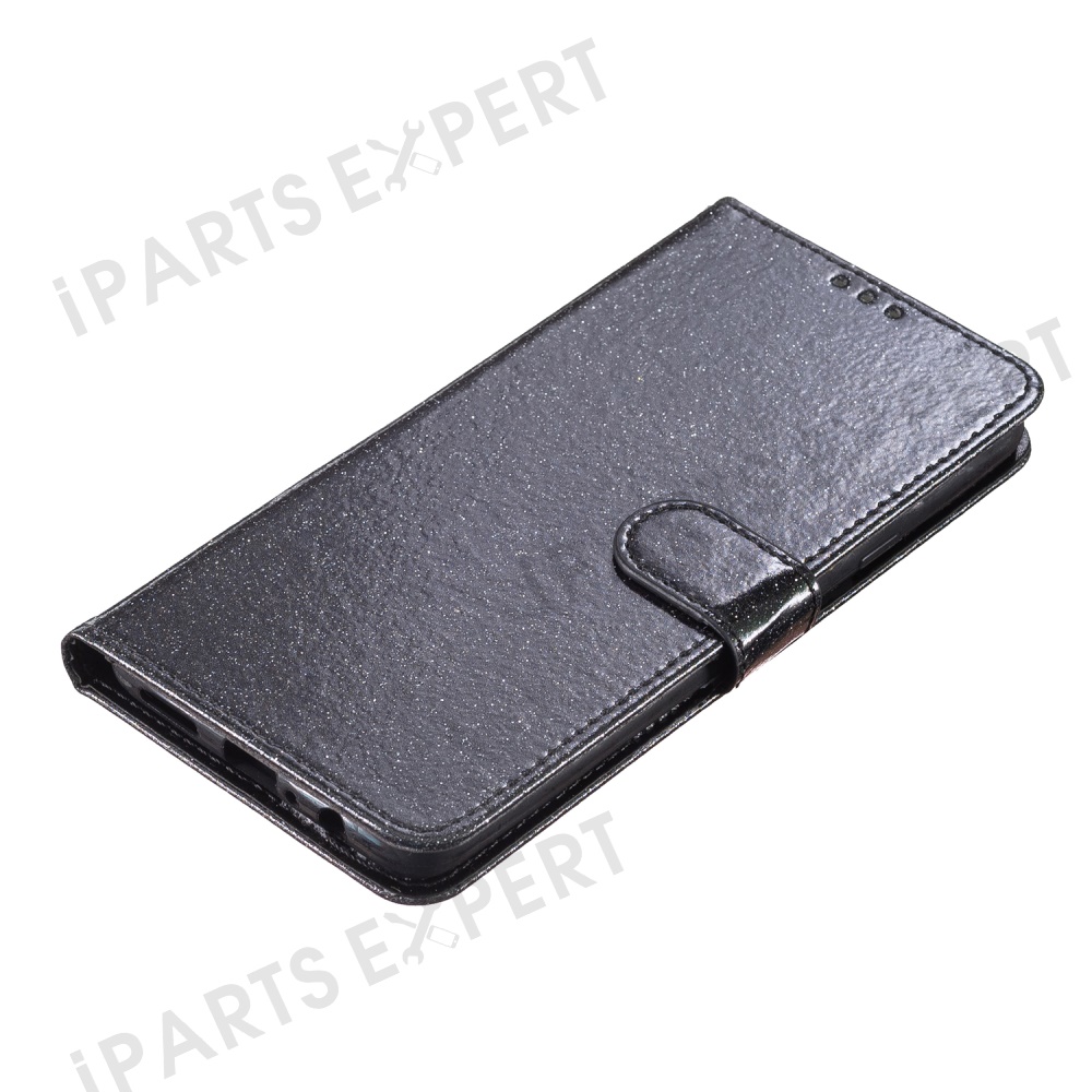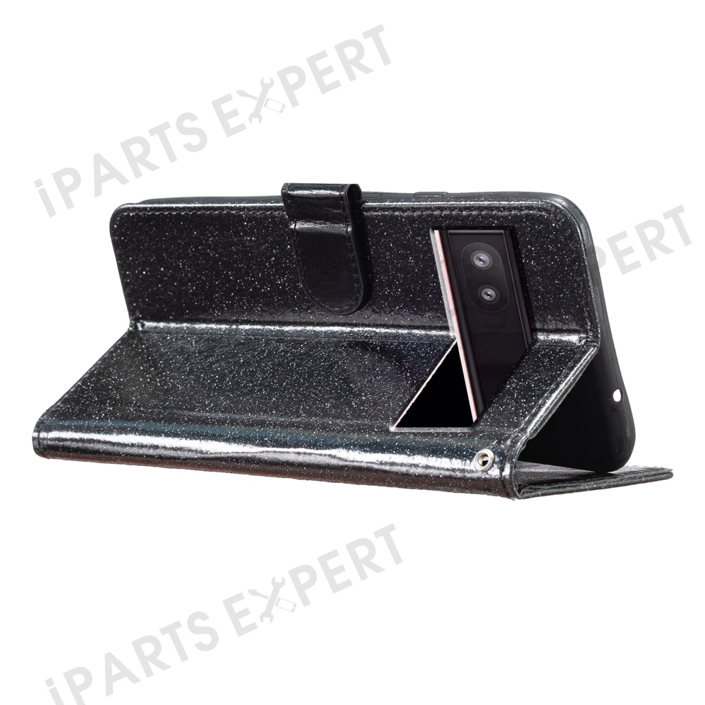 For Google Pixel 9a Wallet Case Glitter Anti-Scratch Leather Phone Cover Stand - Black