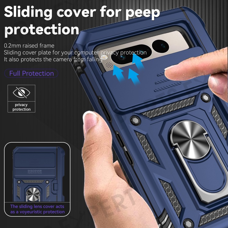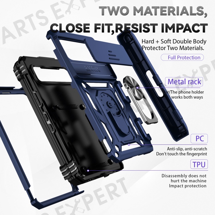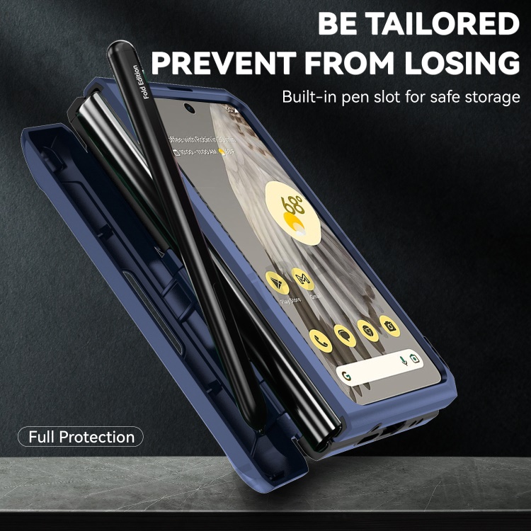 For Google Pixel Fold Kickstand Case PC+TPU Dual Layer Phone Cover - Blue