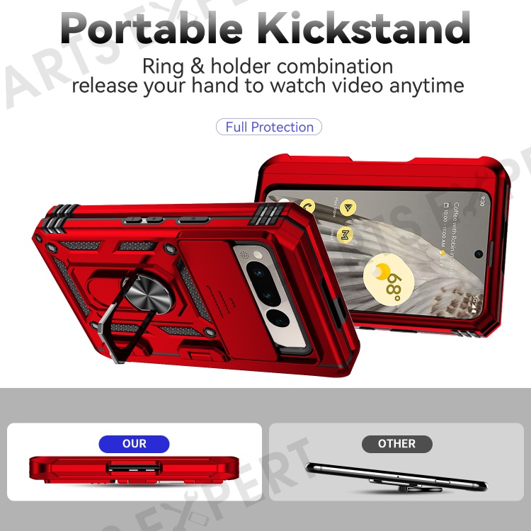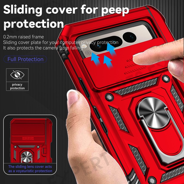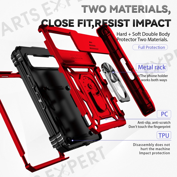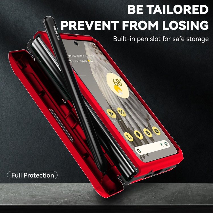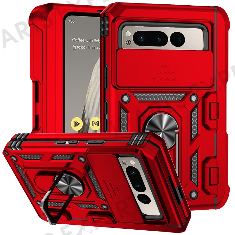 For Google Pixel Fold Kickstand Case PC+TPU Dual Layer Phone Cover - Red