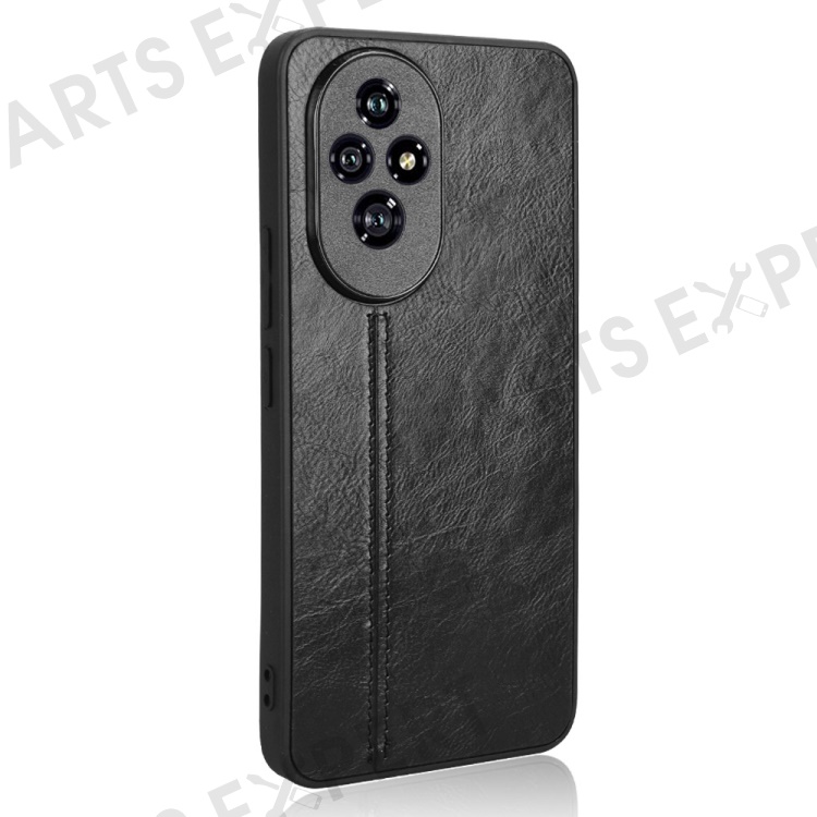 For Honor 200 5G Case Stitching Line PU Leather Coating Hybrid Phone Cover - Black