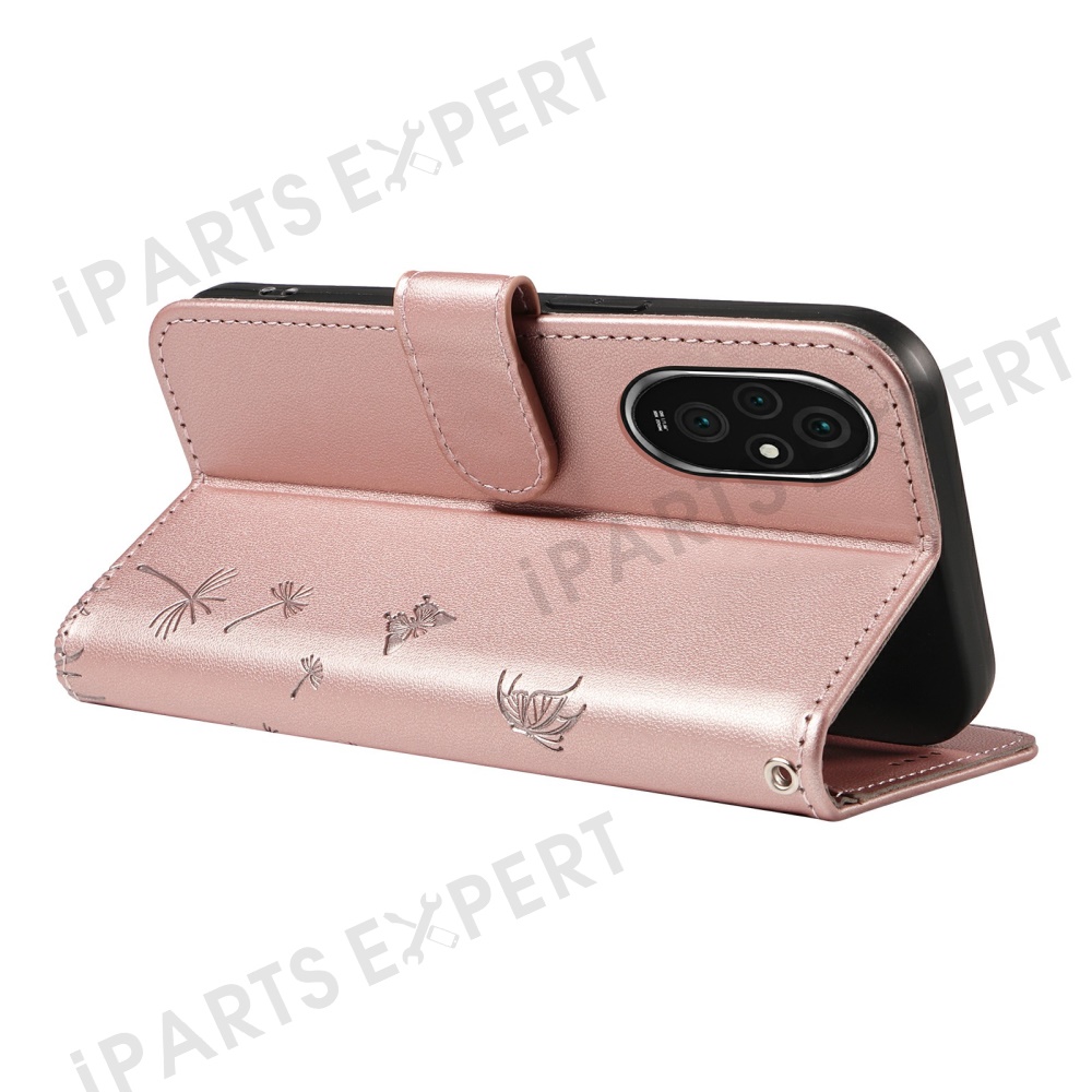 For Honor 200 5G Leather Case Wallet Phone Cover Dandelion Imprint - Rose Gold