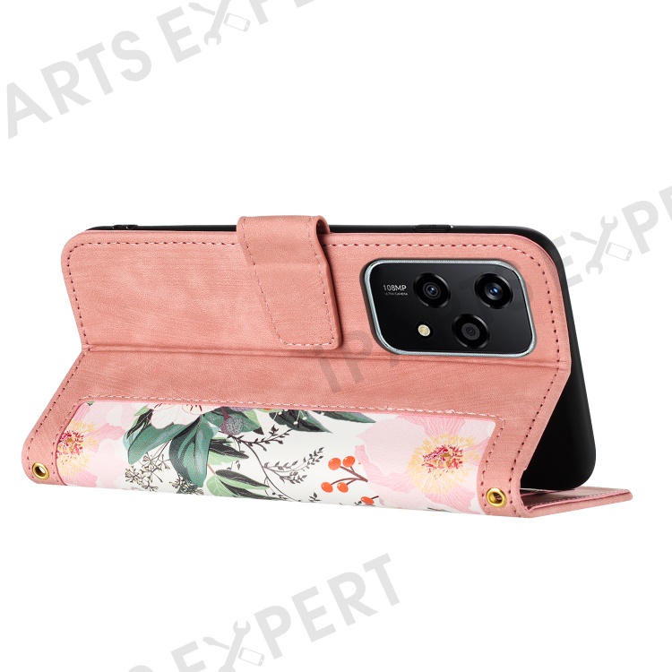 For Honor 200 Lite Case PU Leather Floral Phone Cover with Card Slots - Pink