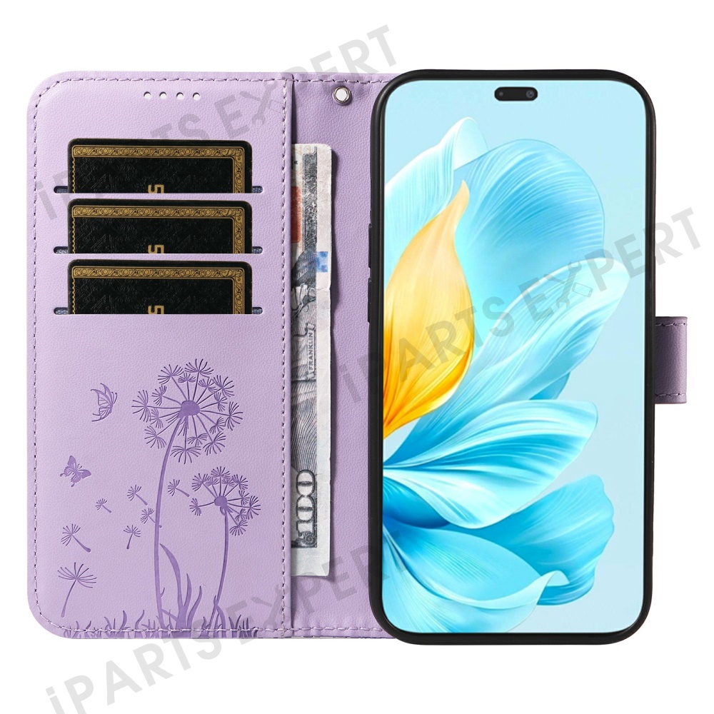 For Honor 200 Lite Leather Case Wallet Phone Cover Dandelion Imprint - Purple