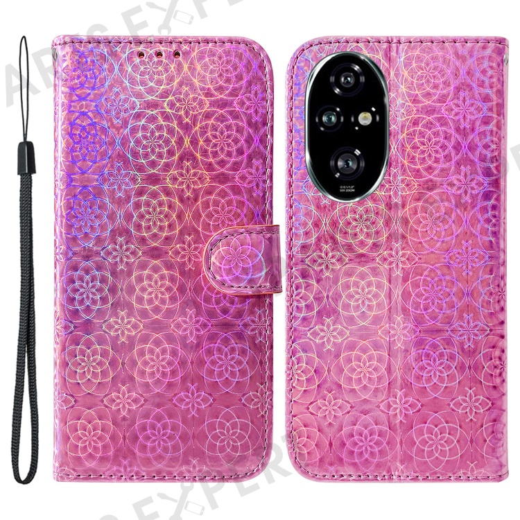 For Honor 200 Pro 5G Case Dazzling Flower PU Leather Stand Shockproof Phone Cover - Pink
